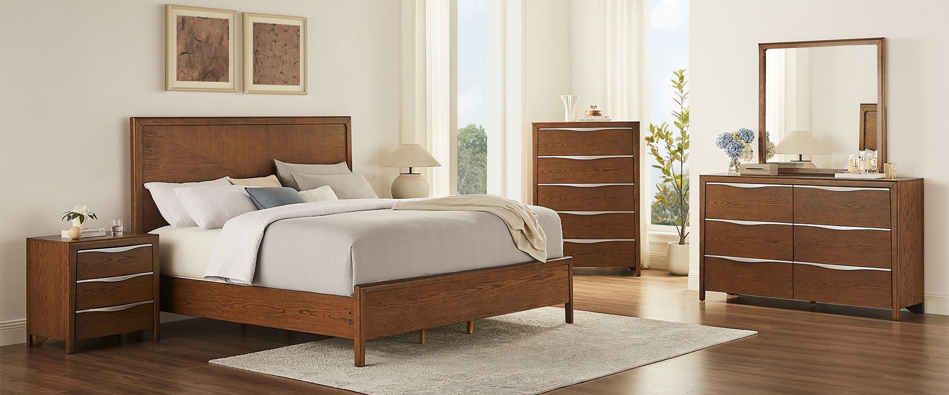 Ivar bedroom collection masterfully blends modern sophistication with vintage maximalist allure. Expertly crafted from rich oak veneer and a solid wood frame, it offers enduring durability and timeless appeal. Bold in style and refined in detail, this elegant collection elevates any space with a perfect harmony of design and substance.
