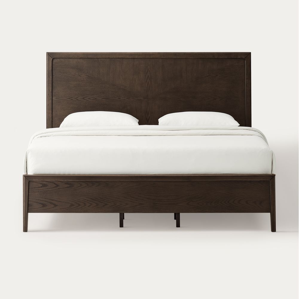 Doweled headboard edges and solid wood legs give this bed its mid-century modern style.