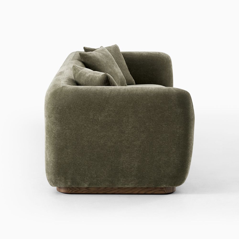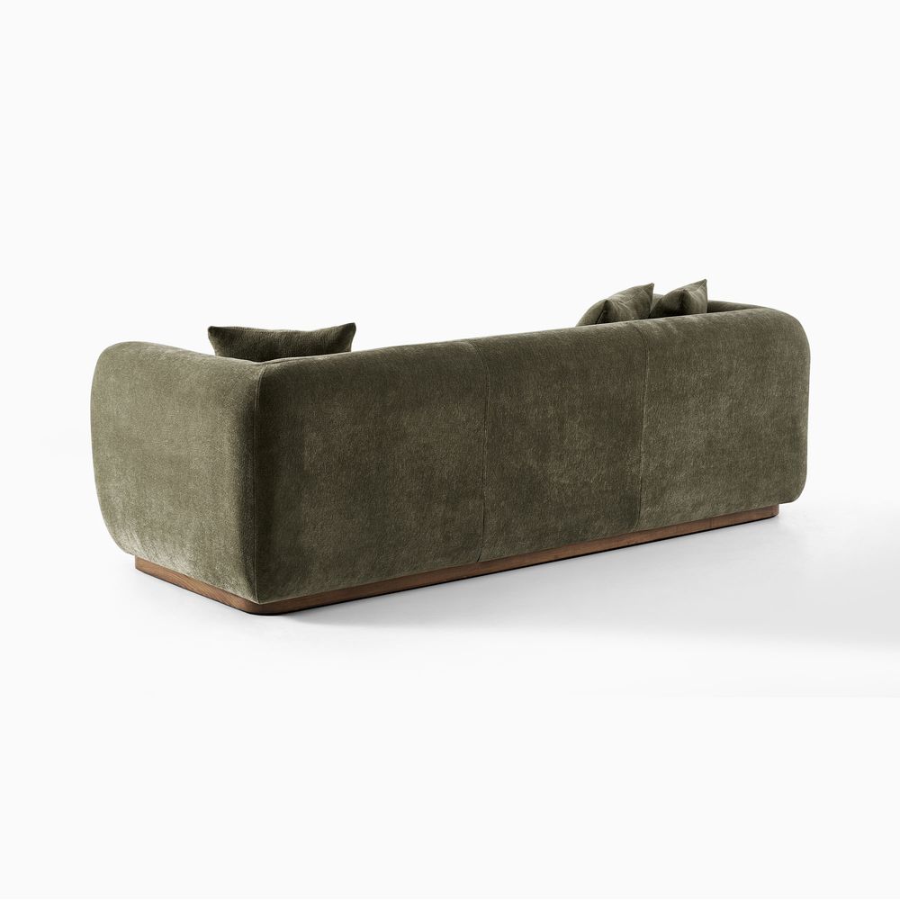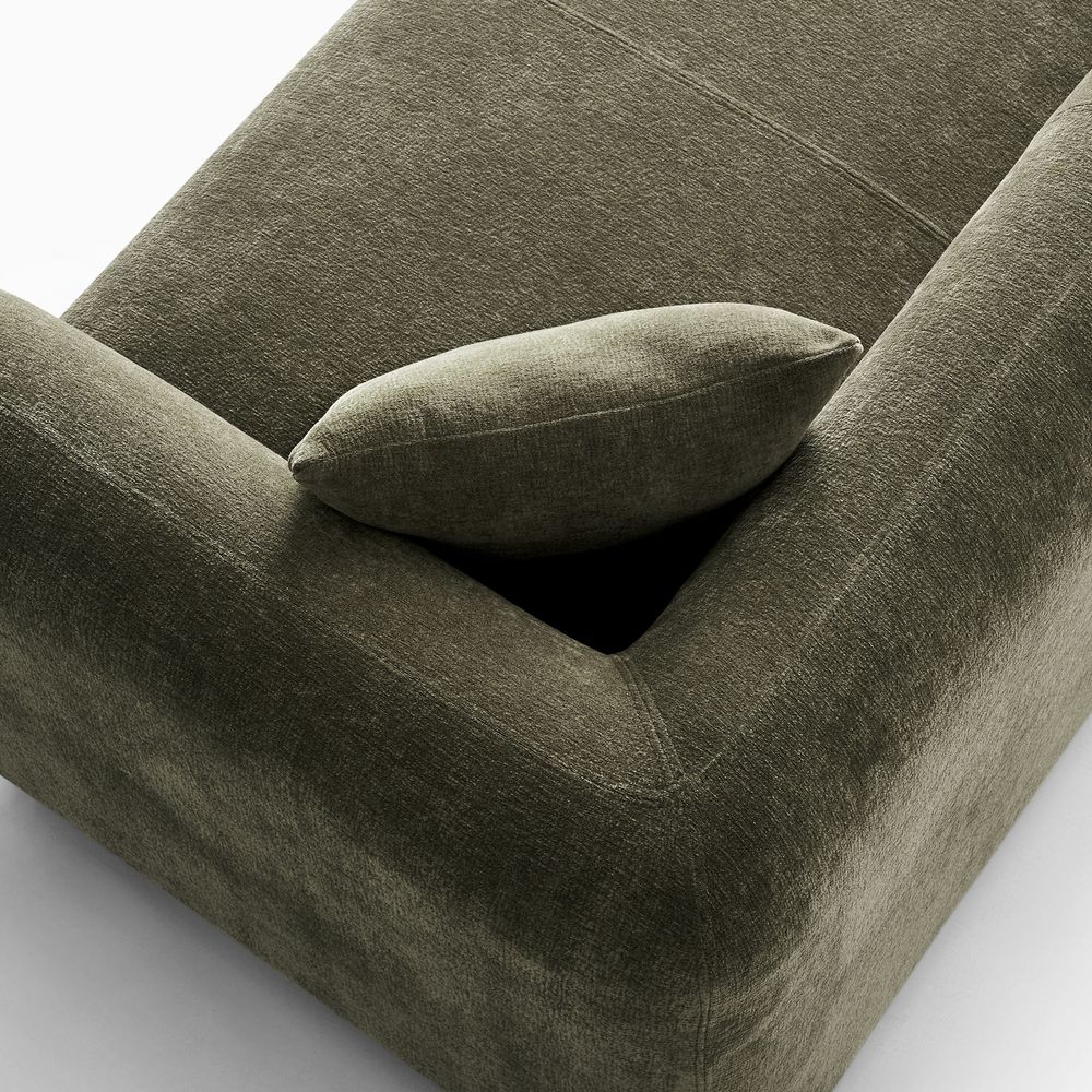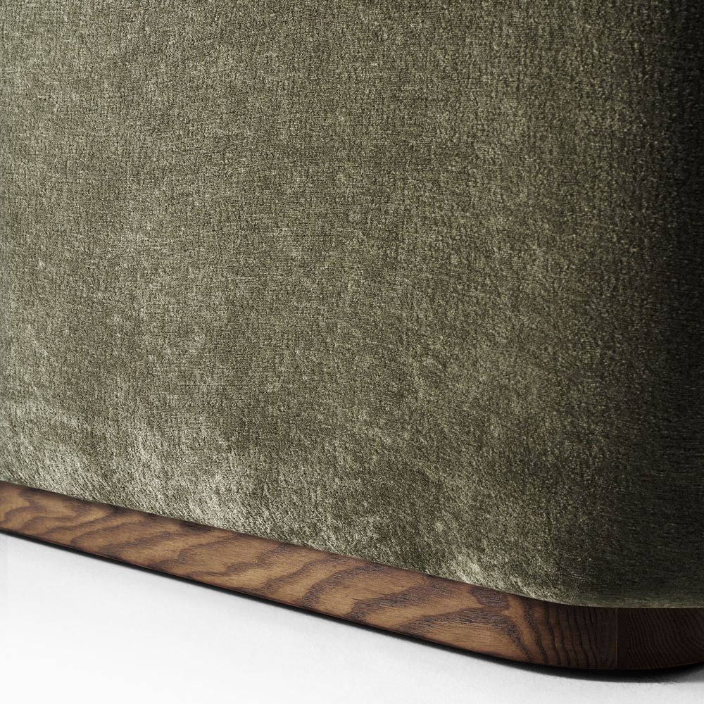 Jade is defined by a bold, grounded silhouette with deep, low-profile seating that encourages relaxed lounging. Rich upholstery forms softly rounded arms that frame the seat, creating a sense of embrace while reinforcing its substantial presence. Set on a recessed solid wood base, the design balances visual lightness with natural warmth. Jade becomes a character piece for modern minimalist, warm contemporary, or softly layered interiors.
