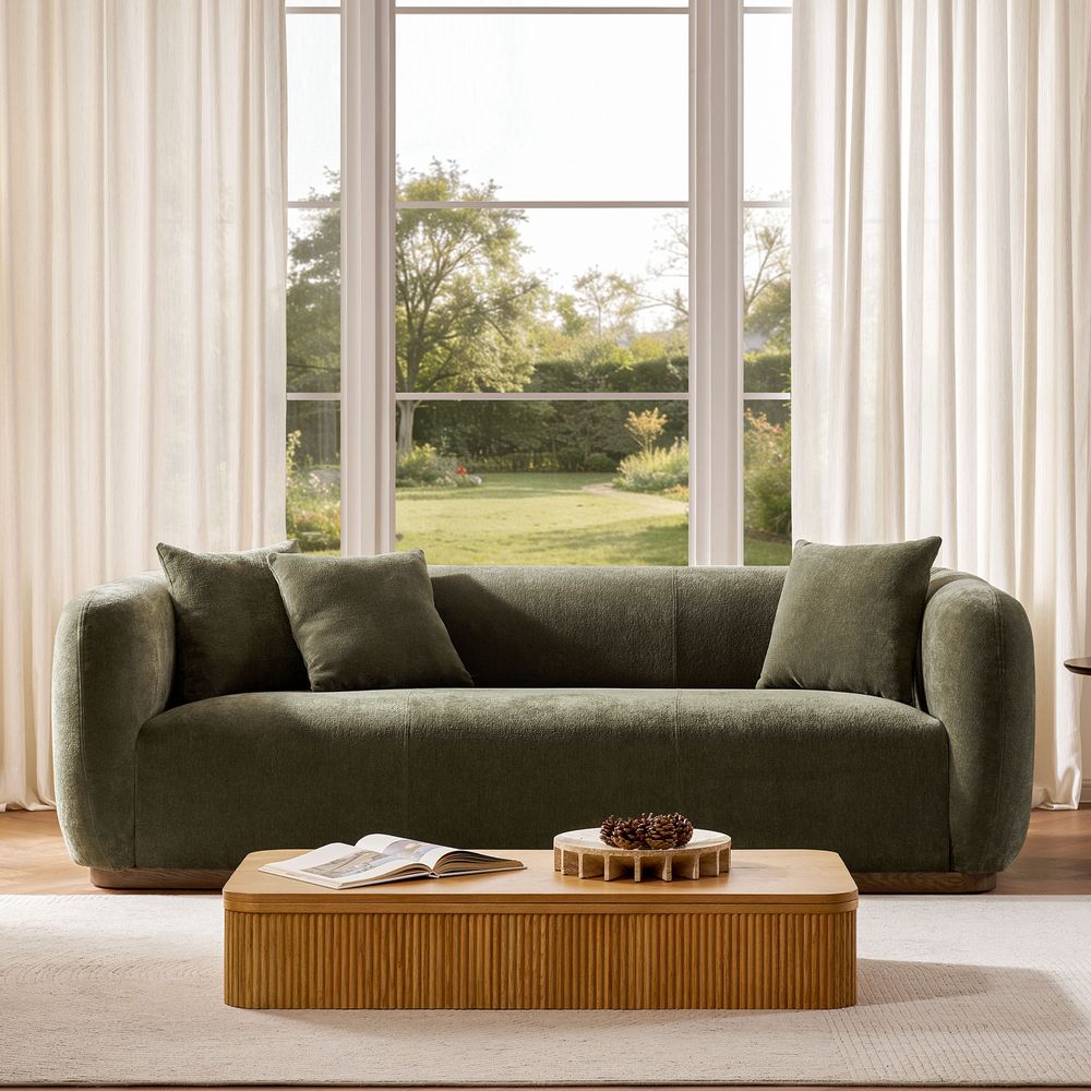 American solid oak and plywood frame.Chenille fabric with softness and a casual lived-in look.Seat cushions have fiber-wrapped, high-resiliency polyurethane foam cores.Sinuous spring suspension with reinforced elastic webbing.The upholstery on the sofa adds soft padding for cozy, stylish seating surfaces.90" sofa designed for 3-4 people's gathering, 2 throw pillows are included.Items purchased at different times may not match due to different dye lots, also color perception can vary by lighting and devices.