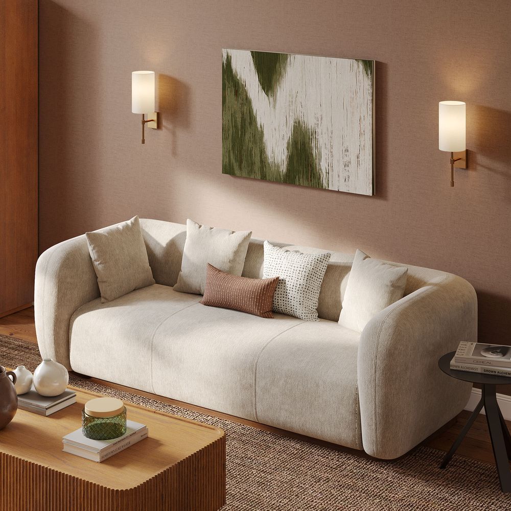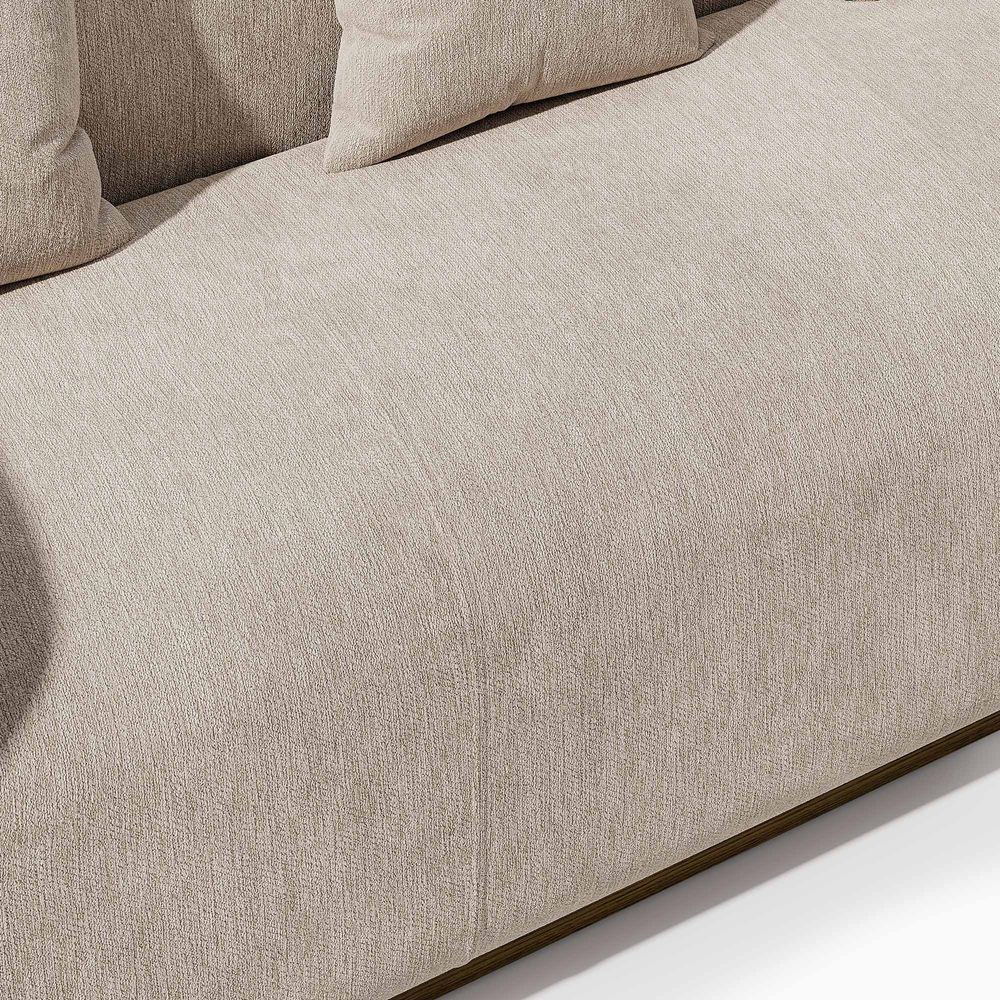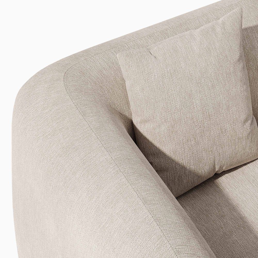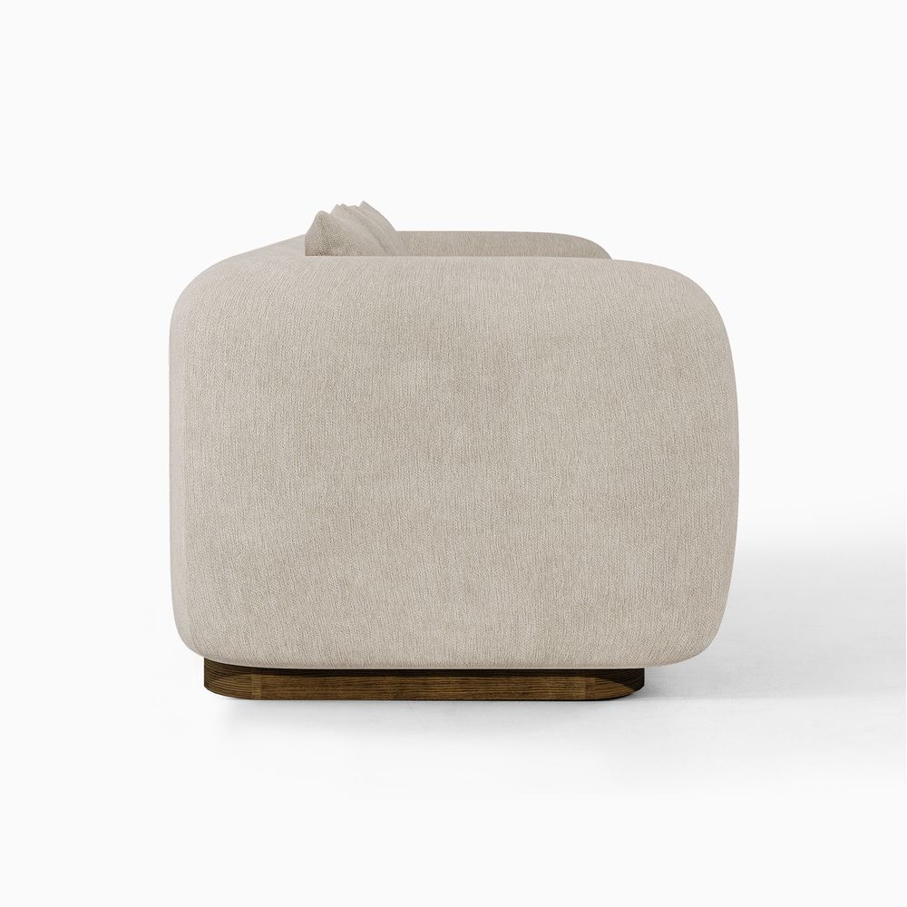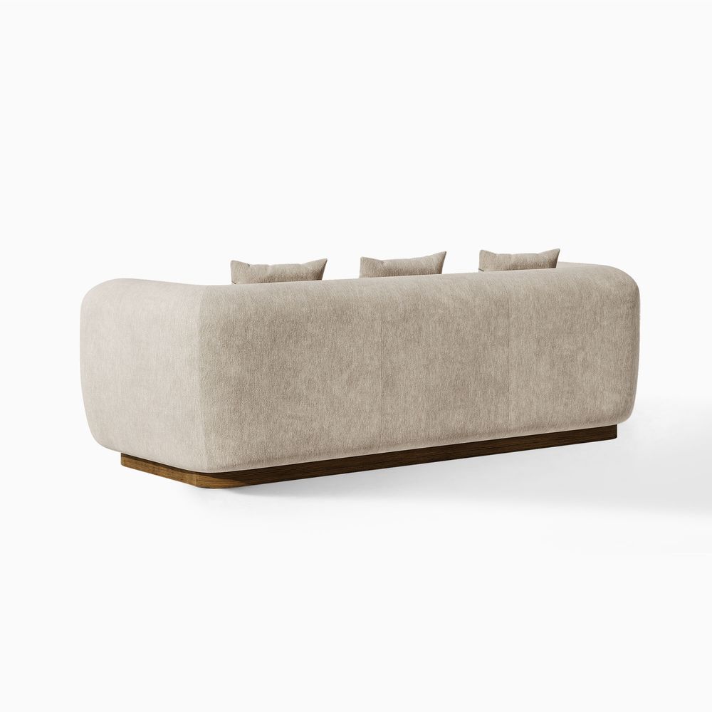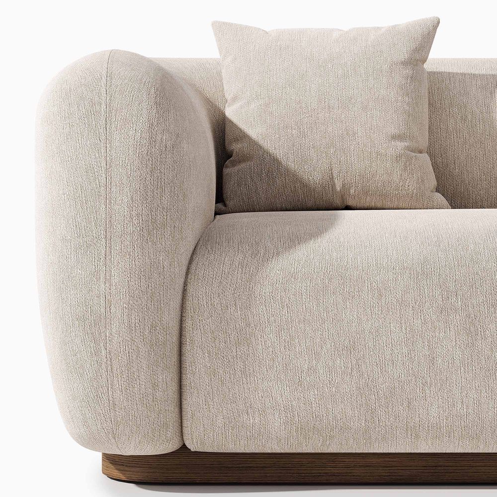 Jade is defined by a bold, grounded silhouette with deep, low-profile seating that encourages relaxed lounging. Rich upholstery forms softly rounded arms that frame the seat, creating a sense of embrace while reinforcing its substantial presence. Set on a recessed solid wood base, the design balances visual lightness with natural warmth. Jade becomes a character piece for modern minimalist, warm contemporary, or softly layered interiors.