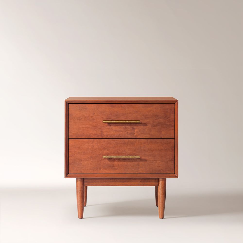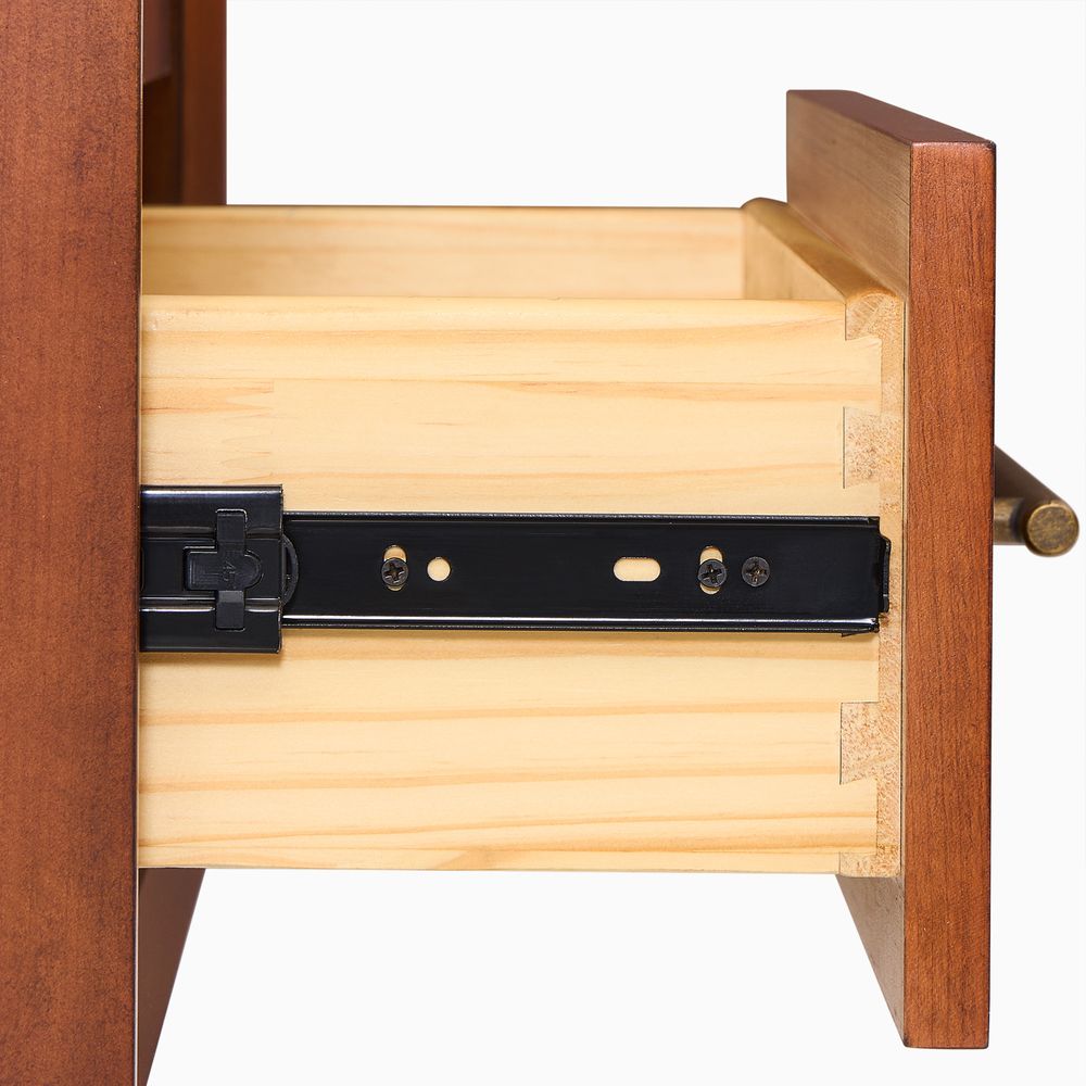 Crafted of solid wood and engineered wood with cherry veneers.All wood is kiln-dried for added durability.Finish is achieved through multistep process in which wood is wire brushed to highlight its rich grain.Wood glazing adds visual interest with greater depth and layering and enhances coloring.Drawers are crafted with precision dovetail joints for superior sturdiness and weight-bearing strength.Solid wood blocks are used at structural joints for reinforcement.Color perception may vary due to wood characteristics, lighting, and devices. Wood grain variation is expected, as each is unique.