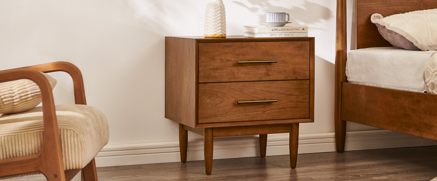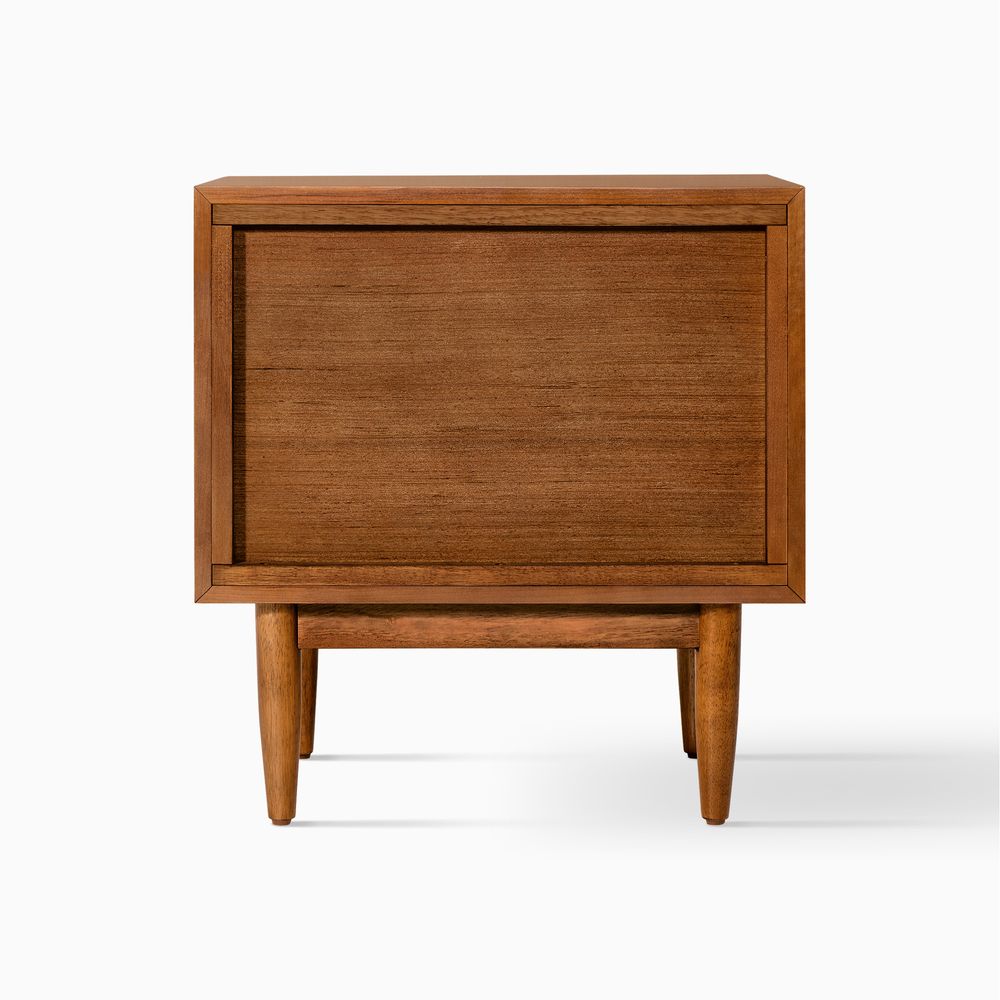 A mid-century accent featuring clean lines, classy tapered wood legs, and a warm, nostalgic tone that blends effortlessly across time and styles.