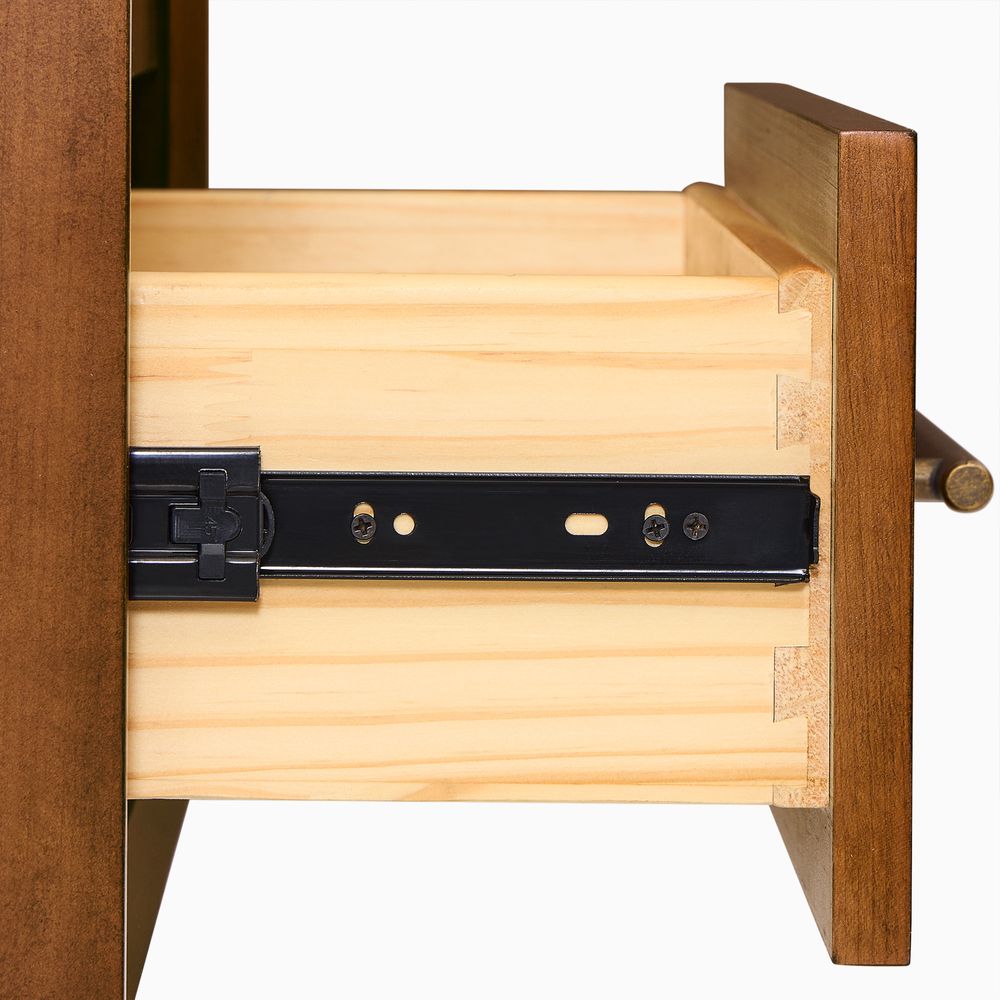 Crafted of solid wood and engineered wood with cherry veneers.All wood is kiln-dried for added durability.Finish is achieved through multistep process in which wood is wire brushed to highlight its rich grain.Wood glazing adds visual interest with greater depth and layering and enhances coloring.Drawers are crafted with precision dovetail joints for superior sturdiness and weight-bearing strength.Solid wood blocks are used at structural joints for reinforcement.Color perception may vary due to wood characteristics, lighting, and devices. Wood grain variation is expected, as each is unique.