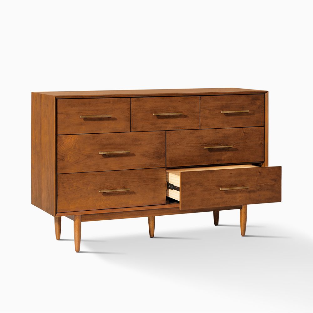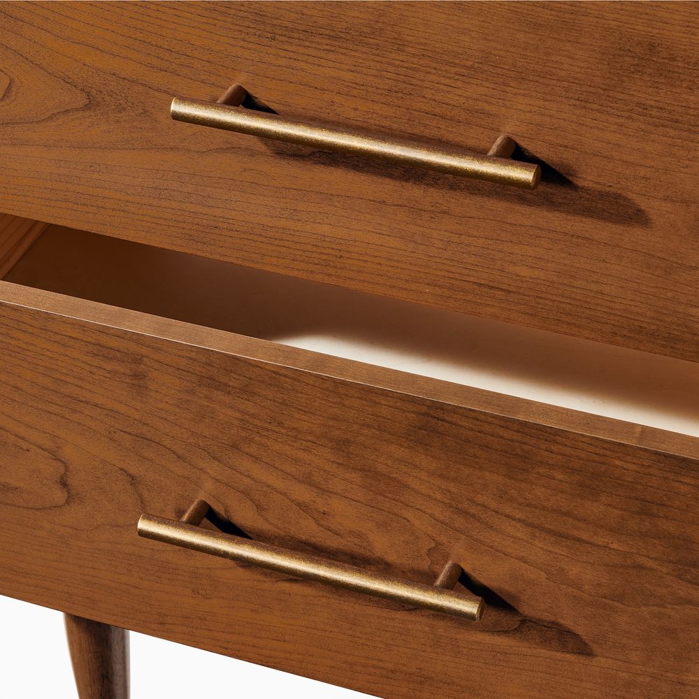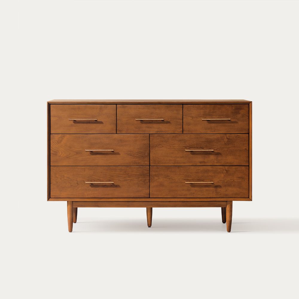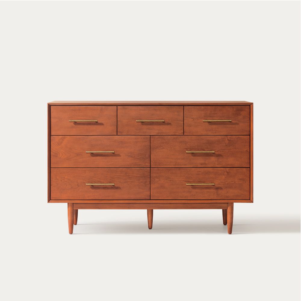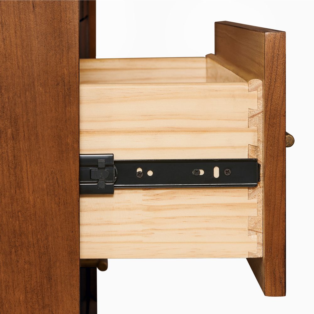 Crafted of solid wood and engineered wood with cherry veneers.All wood is kiln-dried for added durability.Finish is achieved through multistep process in which wood is wire brushed to highlight its rich grain.Wood glazing adds visual interest with greater depth and layering and enhances coloring.Drawers are crafted with precision dovetail joints for superior sturdiness and weight-bearing strength.Solid wood blocks are used at structural joints for reinforcement.Color perception may vary due to wood characteristics, lighting, and devices. Wood grain variation is expected, as each is unique.Anti-tip kit hardware (included) is highly recommended to provide protection against tipping of furniture.