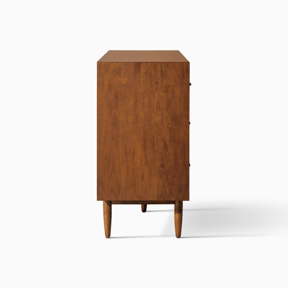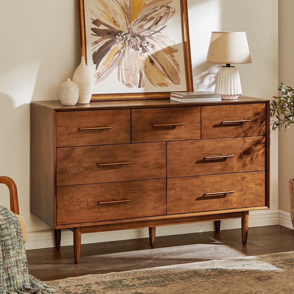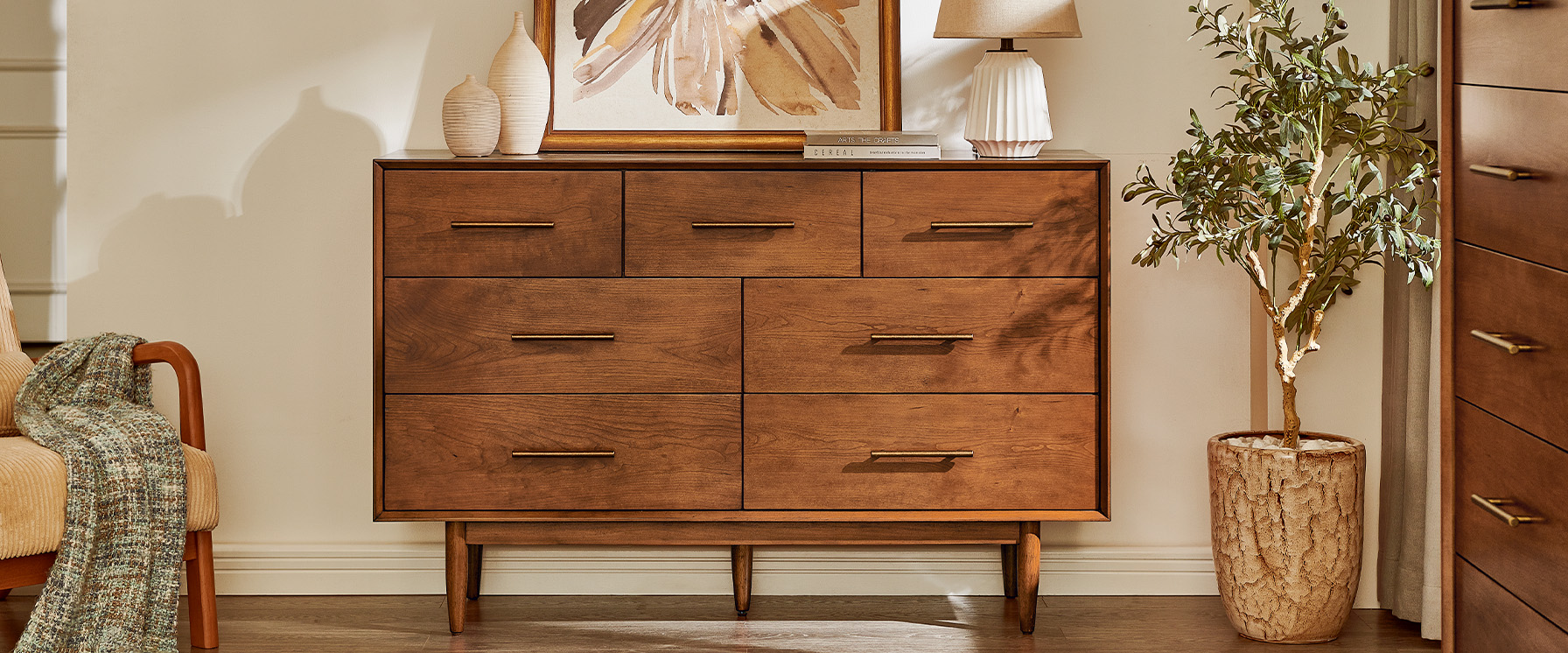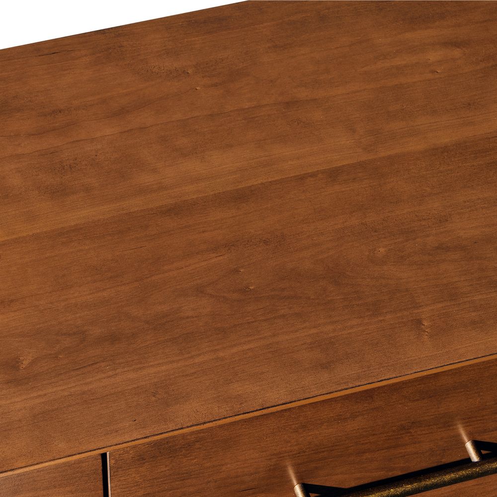 Crafted of solid wood and engineered wood with cherry veneers.All wood is kiln-dried for added durability.Finish is achieved through multistep process in which wood is wire brushed to highlight its rich grain.Wood glazing adds visual interest with greater depth and layering and enhances coloring.Drawers are crafted with precision dovetail joints for superior sturdiness and weight-bearing strength.Solid wood blocks are used at structural joints for reinforcement.Color perception may vary due to wood characteristics, lighting, and devices. Wood grain variation is expected, as each is unique.Anti-tip kit hardware (included) is highly recommended to provide protection against tipping of furniture.