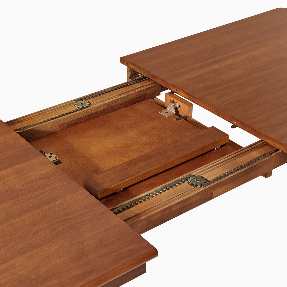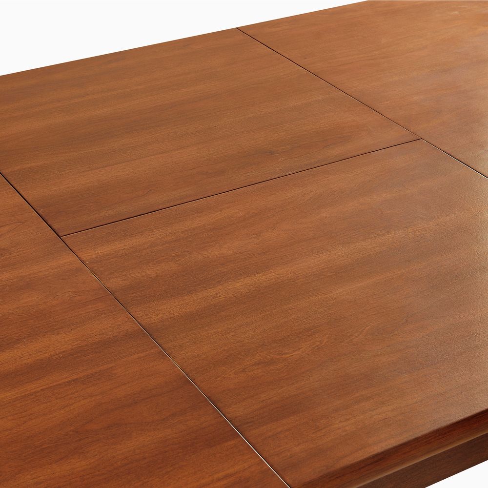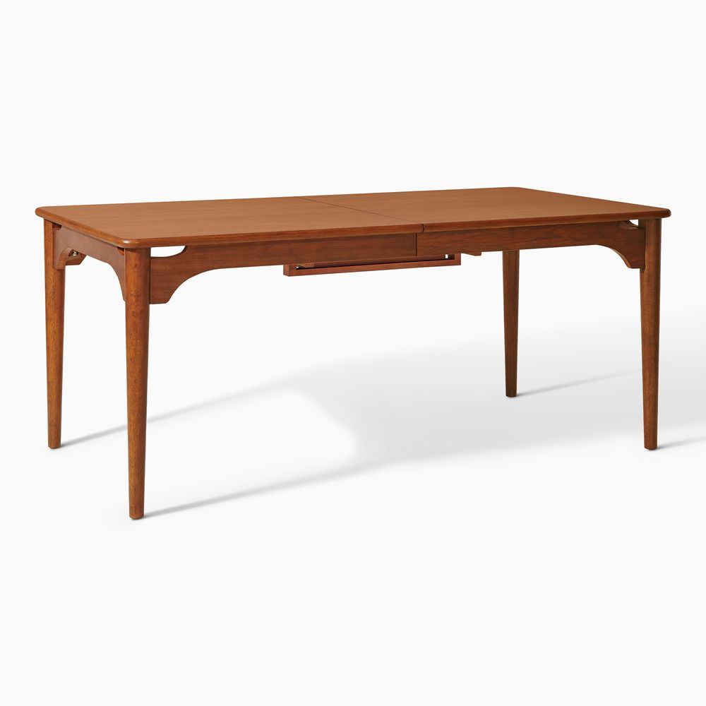 The curved, slim table apron, enhanced by a subtle hollow detail, creates a more tailored, lightweight profile. Two self-storing leaves preserve the table’s clean, minimalist look while delivering the practicality that sits at the heart of mid-century modern design.