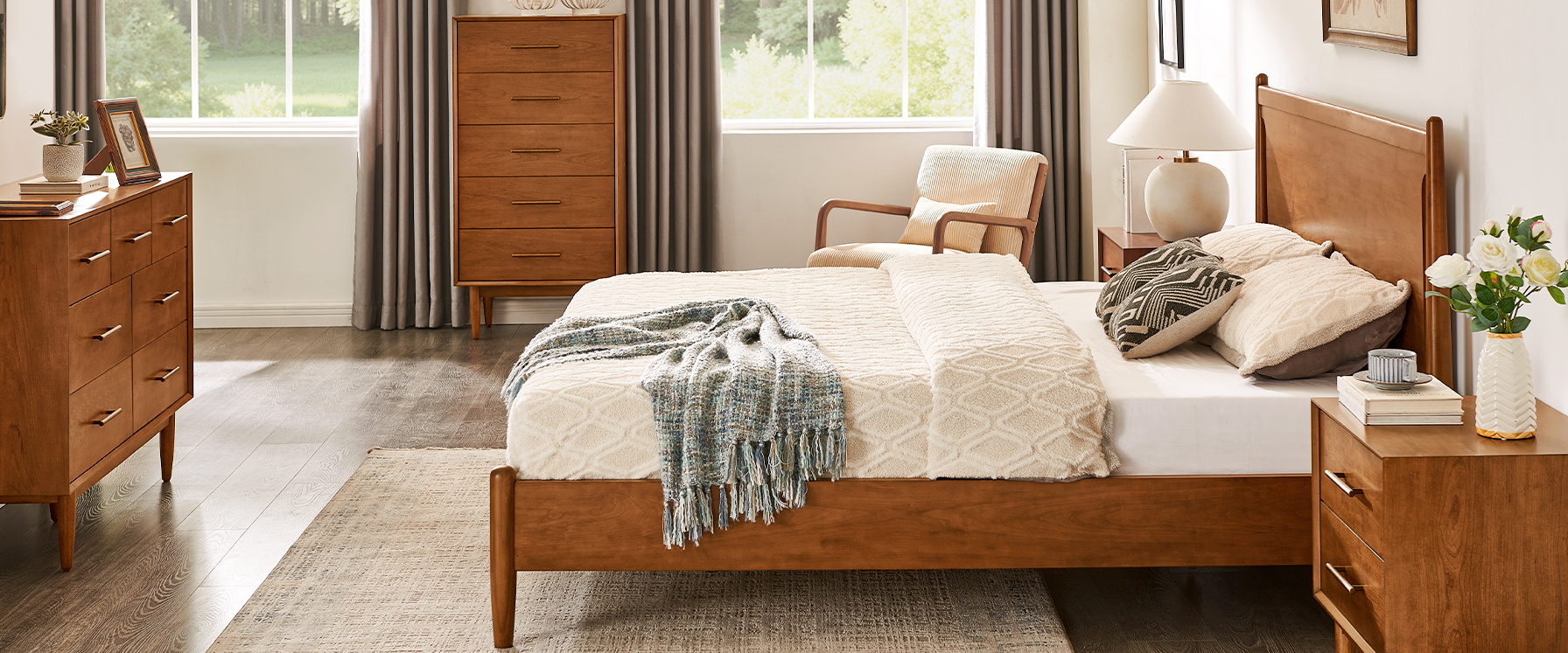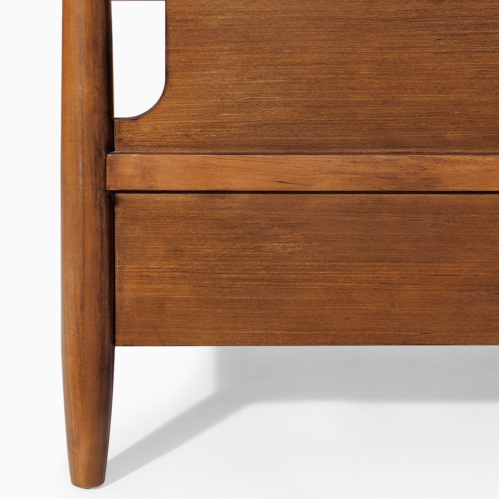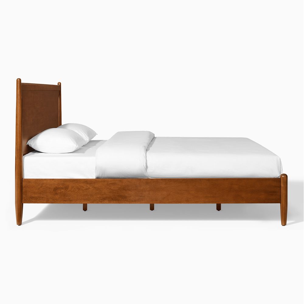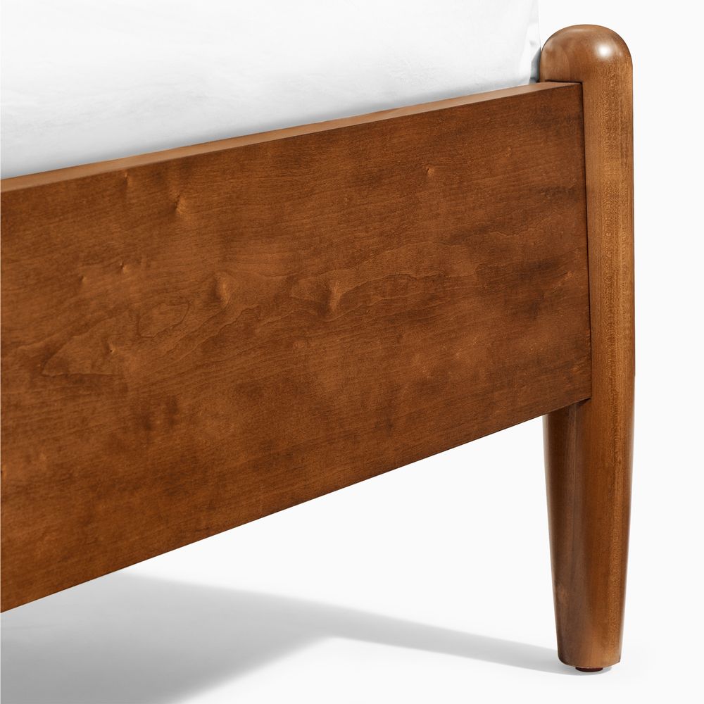 Crafted of solid wood and engineered wood with cherry veneers.All wood is kiln-dried for added durability.Finish is achieved through multistep process in which wood is wire brushed to highlight its rich grain.Wood glazing adds visual interest with greater depth and layering and enhances coloring.Include 6 middle support legs.Bed accommodates most standard mattresses, box spring optional, supporting up to 800 lbs.Color perception may vary due to wood characteristics, lighting, and devices. Wood grain variation is expected, as each is unique.