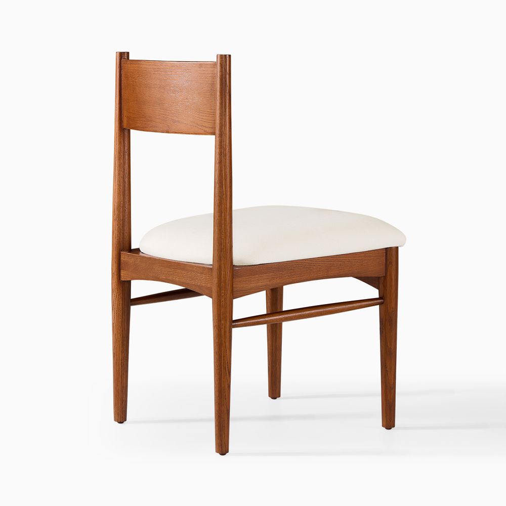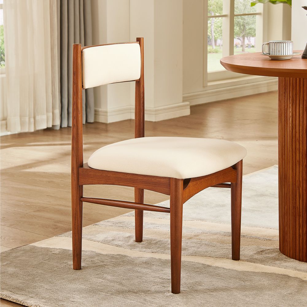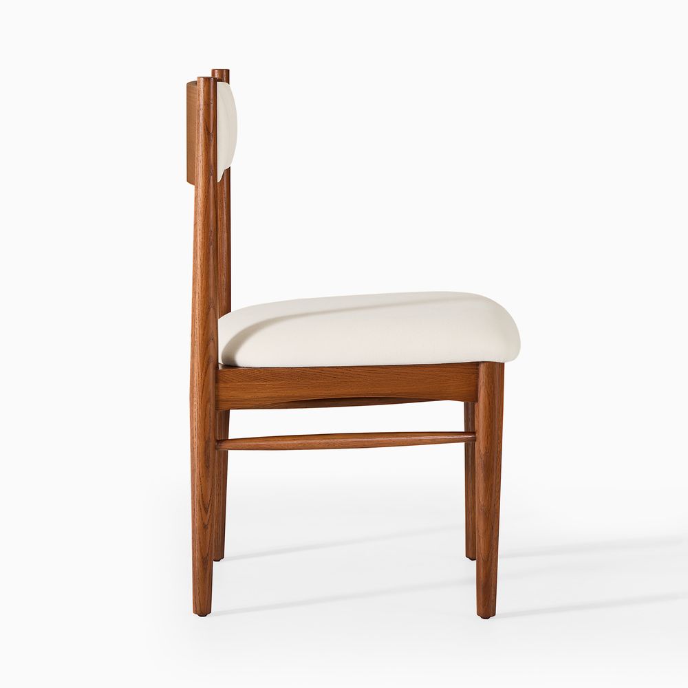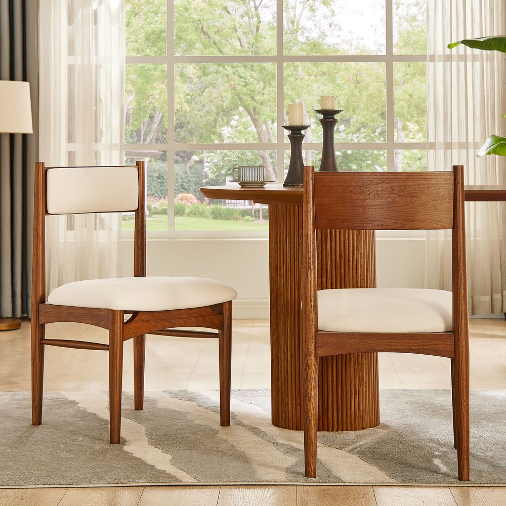 The solid wood frame gives a steady, lasting, and calm presence, while the barrel-curved backrest and openwork apron add a refined silhouette, making it a complementary piece for any Mid-Century Modern dining set.