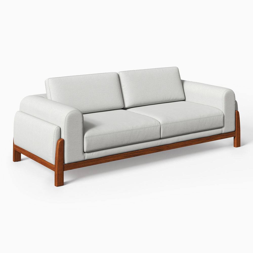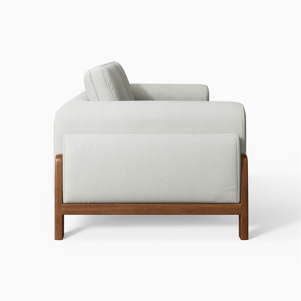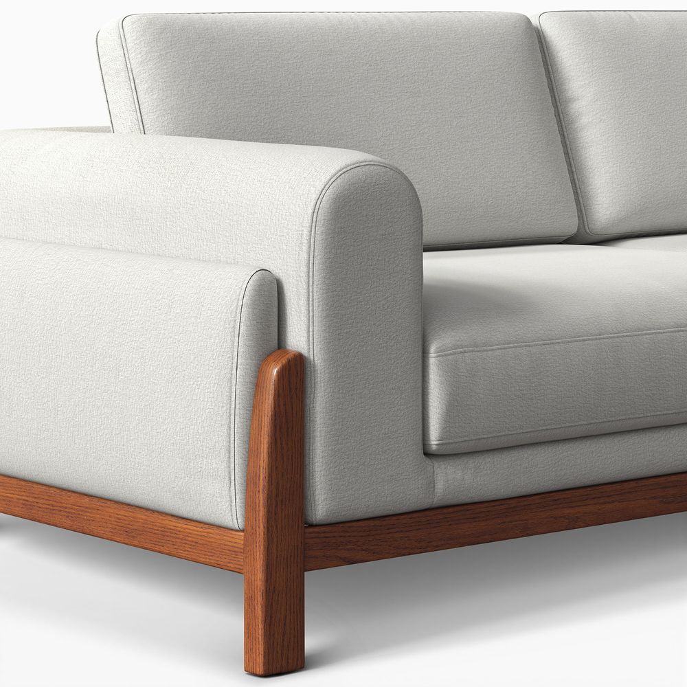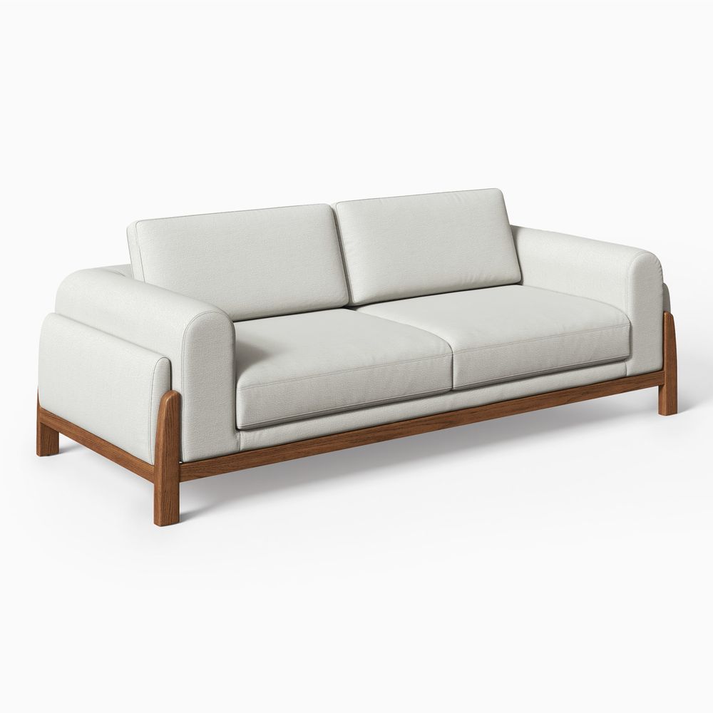 The Koseby sofa perfectly blends organic forms with functional elegance. The soft, rounded arms and plush, cloud-like upholstery offer inviting comfort, beautifully contrasted by the clean, low-profile frame in rich, solid wood. A stylish statement piece that elevates any contemporary living space.