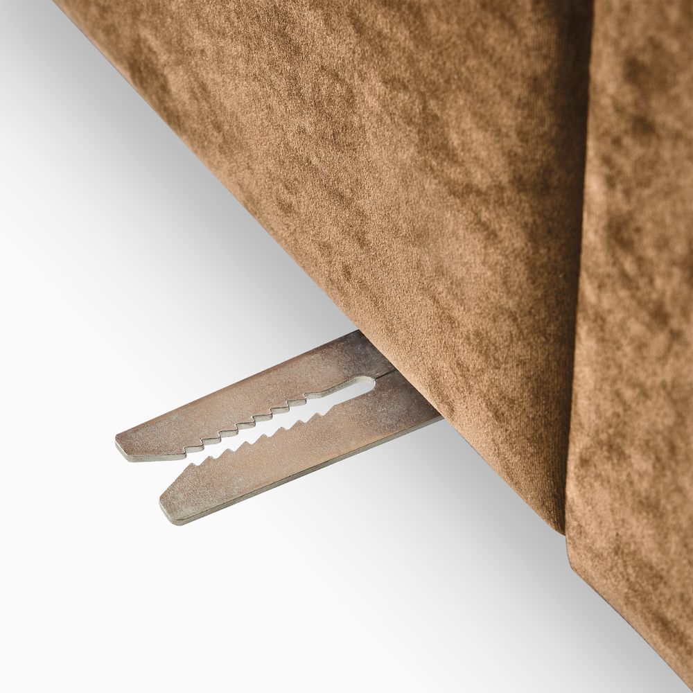 Preconfigured sofa consists of 1 left armchair, 1 right armchair, 1 armless chair and 1 Ottoman.American solid ash wood and plywood frame.Durable velvet with a soft, short pile and matte finish.Seat cushions have fiber-wrapped, high-resiliency polyurethane foam cores.Sinuous spring suspension with reinforced elastic webbing.Cushion covers unzip to remove.3 throw pillows are included.Sectional pieces attach via alligator clips (included).Items purchased at different times may not match due to different dye lots, also color perception can vary by lighting and devices.