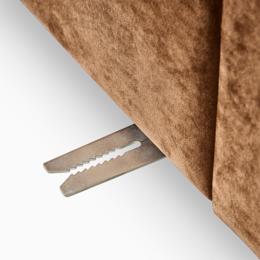 Preconfigured sofa consists of 1 left armchair, 1 right armchair, 1 armless chair and 1 Ottoman.American solid ash wood and plywood frame.Durable velvet with a soft, short pile and matte finish.Seat cushions have fiber-wrapped, high-resiliency polyurethane foam cores.Sinuous spring suspension with reinforced elastic webbing.Cushion covers unzip to remove.3 throw pillows are included.Sectional pieces attach via alligator clips (included).Items purchased at different times may not match due to different dye lots, also color perception can vary by lighting and devices.