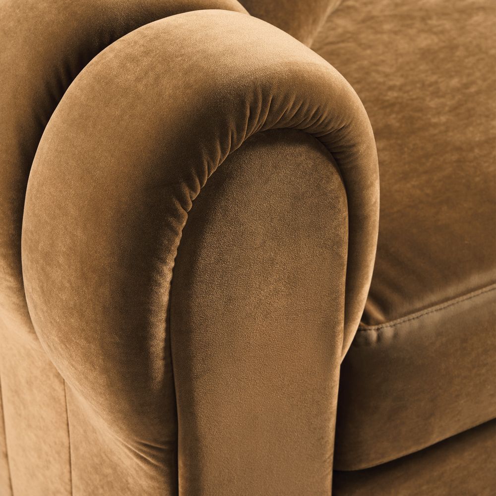The Kystlin sofa draws inspiration from mid-century modern curves, reimagined with plush, channel-tufted backs that blend retro charm and contemporary comfort. Its rounded arms and tailored silhouette nod to classic lounge aesthetics, while the modular frame balances structured elegance with relaxed, inviting warmth, crafted to feel both timeless and perfectly suited for modern living spaces.