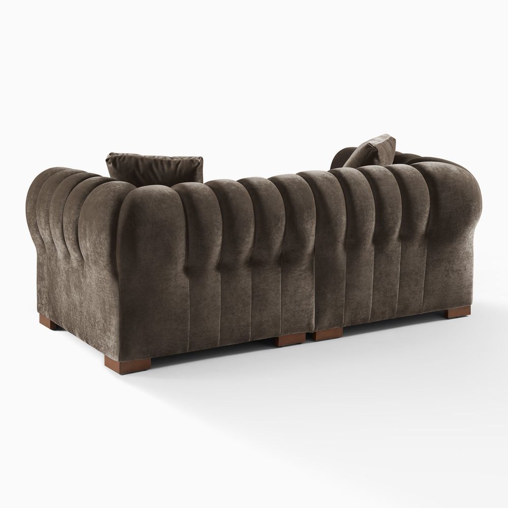 This sofa draws inspiration from mid-century modern curves, reimagined with plush, channel-tufted backs that blend retro charm and contemporary comfort. Its rounded arms and tailored silhouette nod to classic lounge aesthetics, while the modular frame balances structured elegance with relaxed, inviting warmth—crafted to feel both timeless and perfectly suited for modern living spaces.