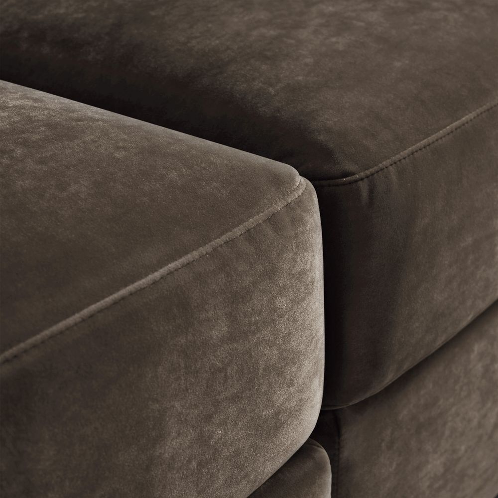 American solid ash wood and plywood frame.Durable velvet with a soft, short pile and matte finish.Seat cushions have fiber-wrapped, high-resiliency polyurethane foam cores.Sinuous spring suspension with reinforced elastic webbing.Cushion covers unzip to remove.83" Sofa designed for 3-4 people's gathering. 2 throw pillows are included.Sectional pieces attach via alligator clips (included).Items purchased at different times may not match due to different dye lots, also color perception can vary by lighting and devices.