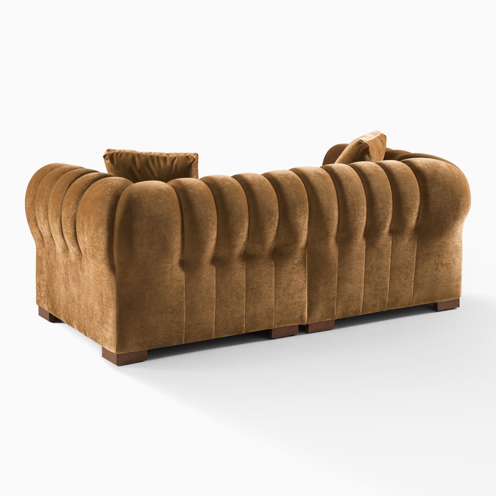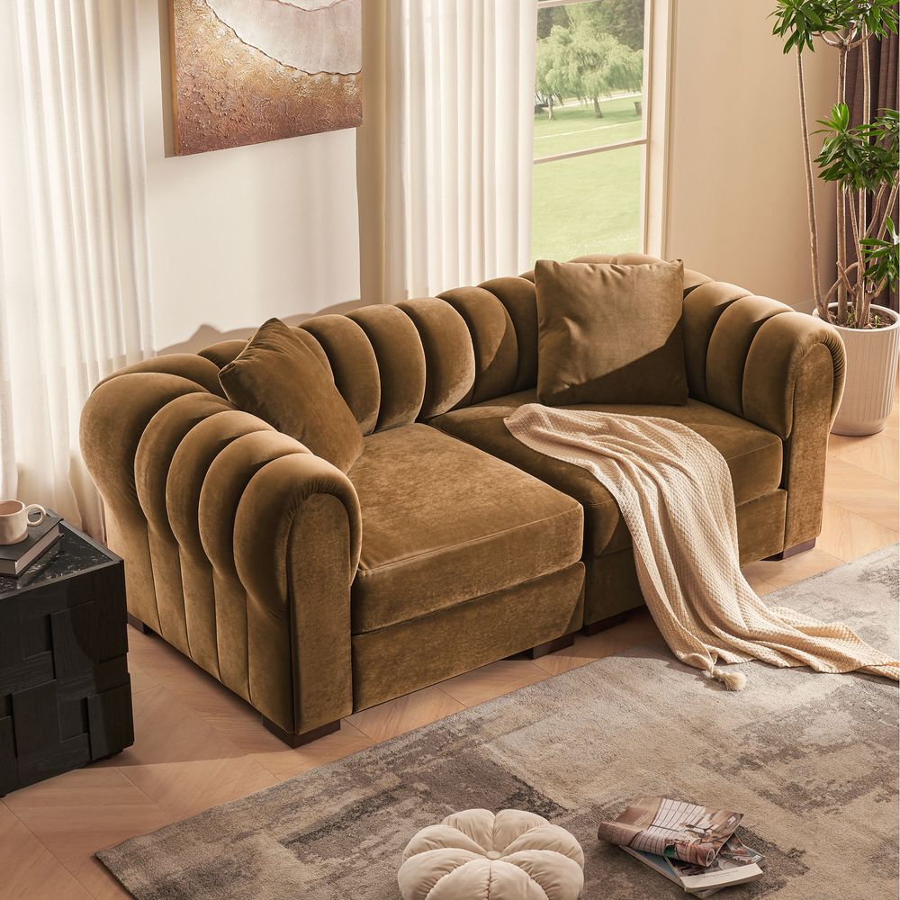 Loveseat: American solid wood and plywood frame. Durable velvet with a soft, short pile and matte finish.Accent Chair: American solid ash wood and plywood frame. Chenille fabric with softness and a casual lived-in lookSeat cushions have fiber-wrapped, high-resiliency polyurethane foam cores.Sinuous spring suspension with reinforced elastic webbing.Loveseat's cushion covers unzip to remove.Sectional pieces attach via alligator clips (included).Items purchased at different times may not match due to different dye lots, also color perception can vary by lighting and devices.