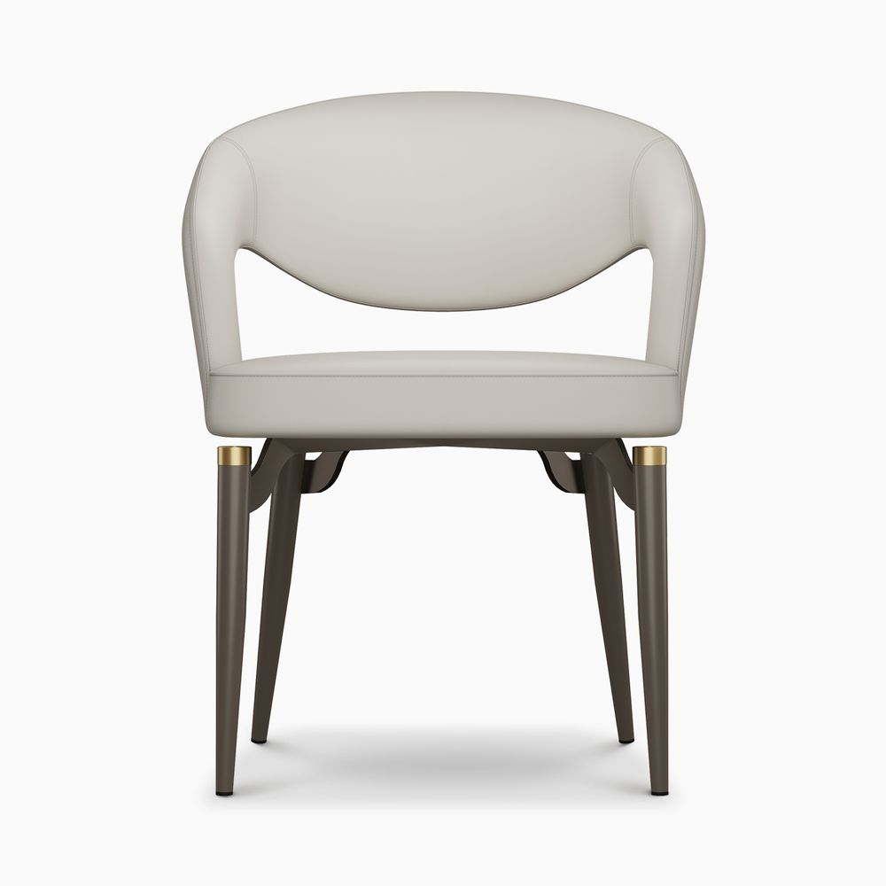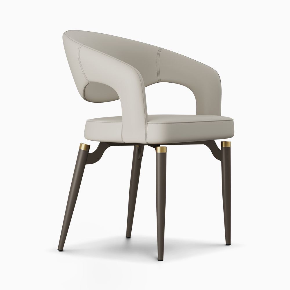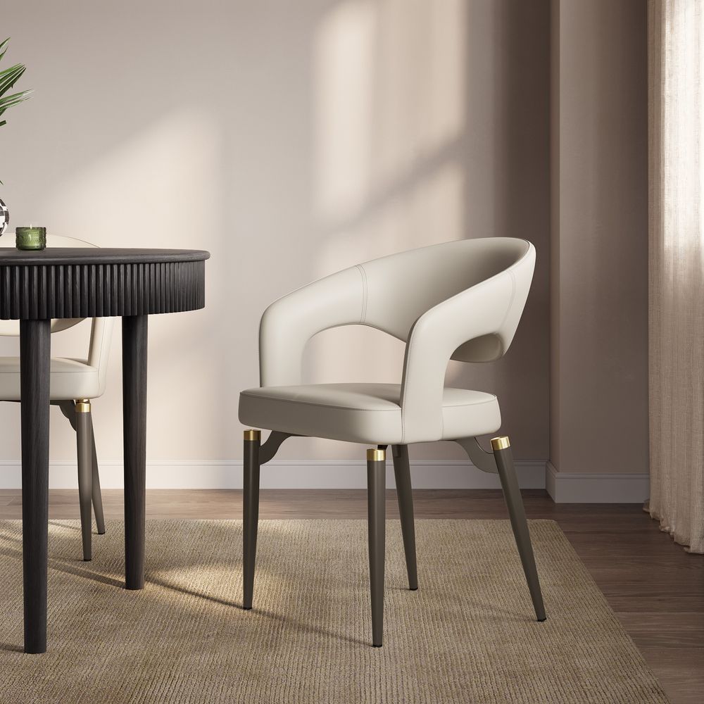 Discover sophistication with our chic dining chairs, boasting a luxurious white leatherette and contrasting dark legs accented with gold tips. These chairs offer a modern flair and unparalleled comfort, ready to elevate any dining experien