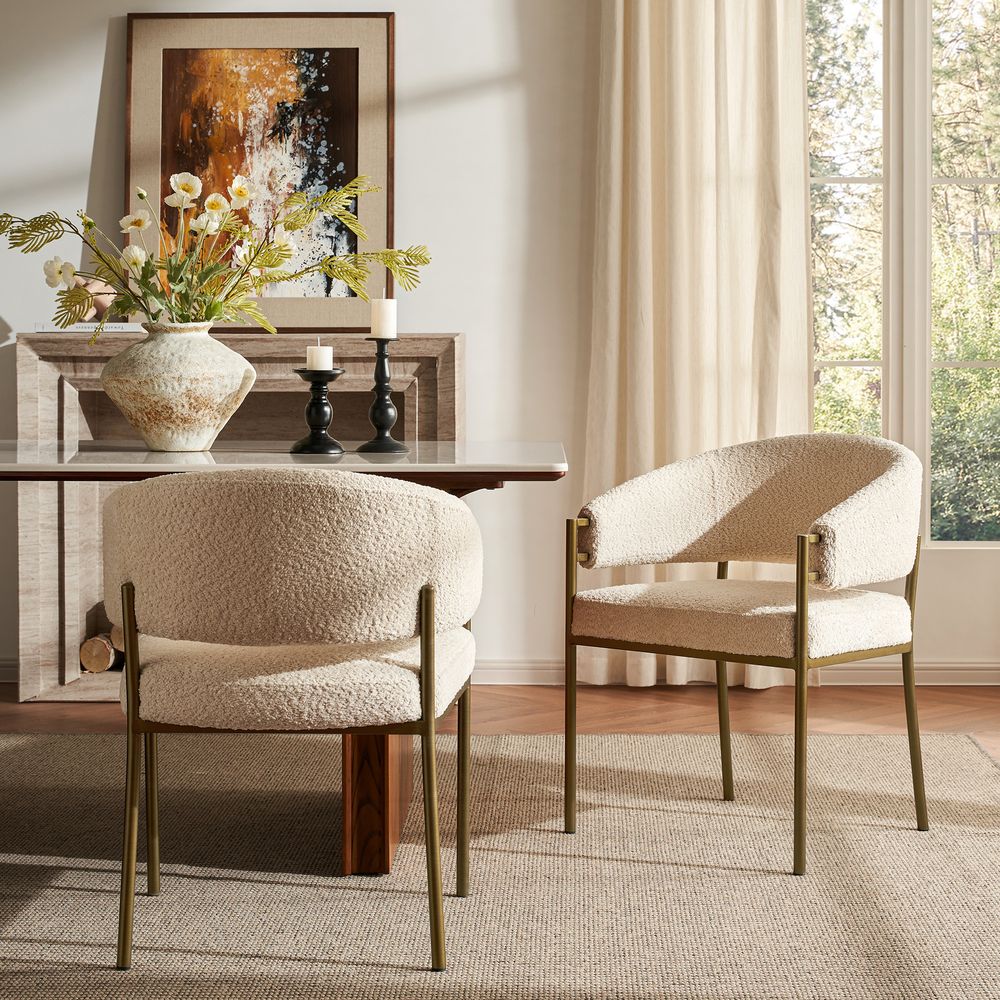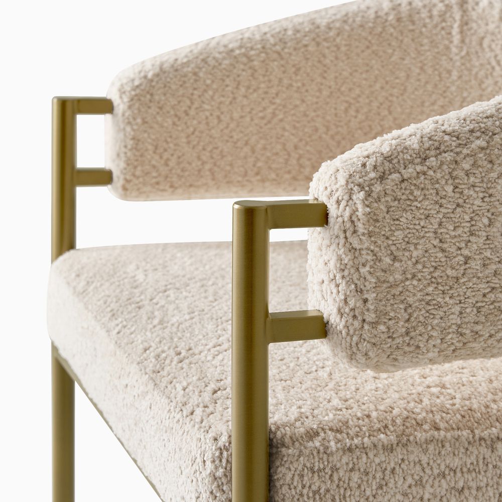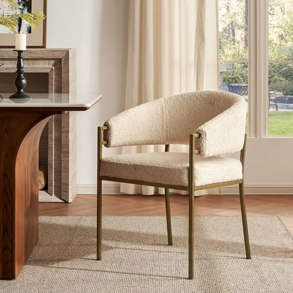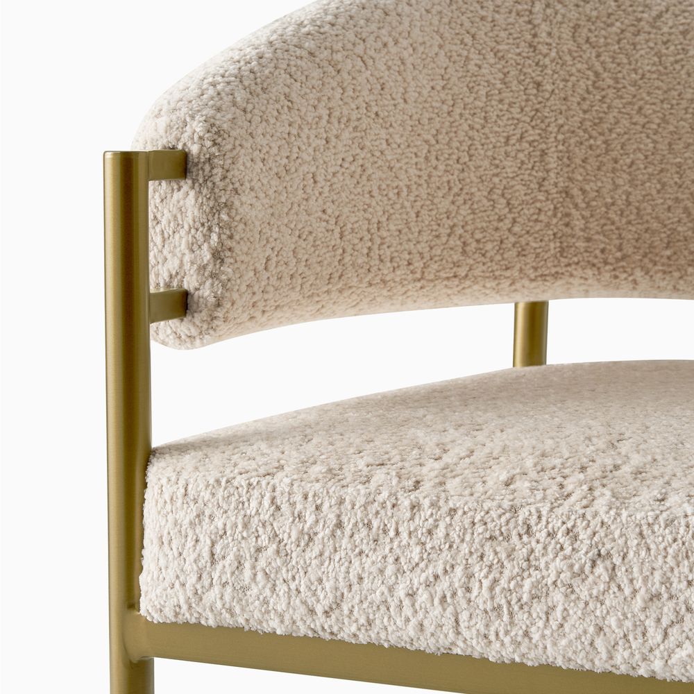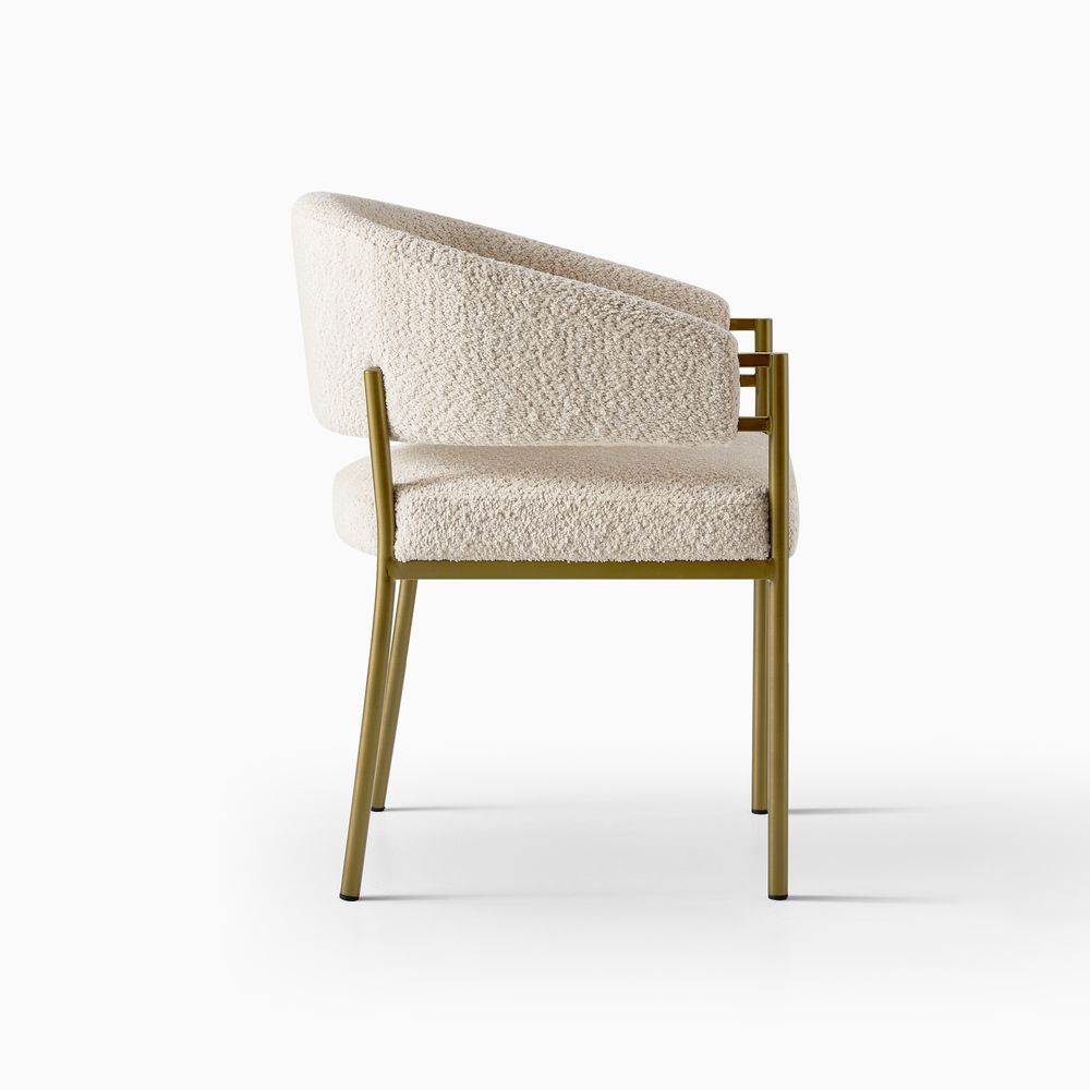 Lior plays with curves and lines. A slender metal frame defines a crisp silhouette, giving it a clean, modern presence, while the upholstered seat and backrest introduce a warm, soft contrast. The square cushion, paired with the curved, enveloping backrest, adds a subtle touch of geometric play. Modern and restrained, Lior still feels inviting and comfortable.