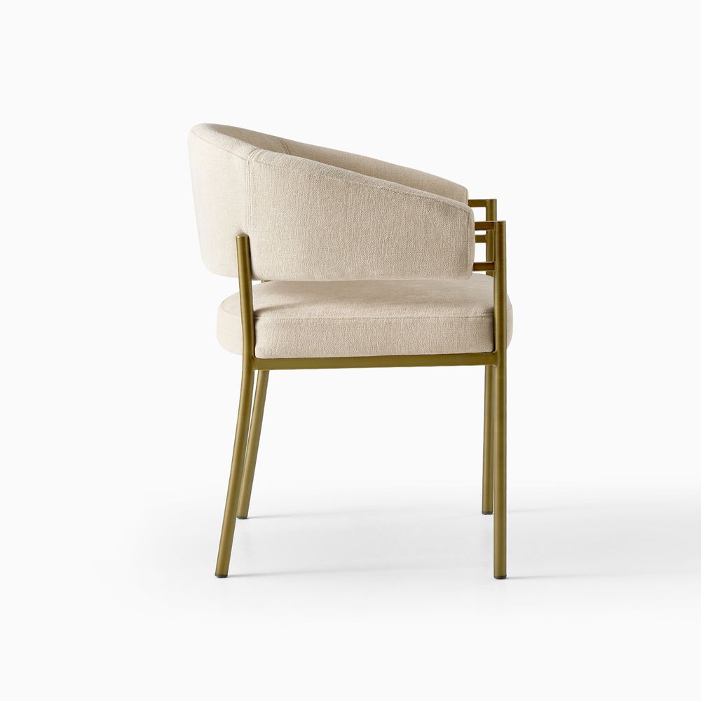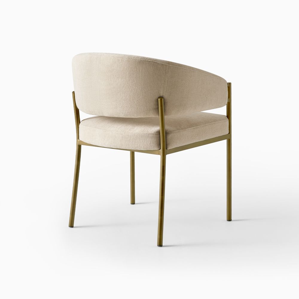 Lior plays with curves and lines. A slender metal frame defines a crisp silhouette, giving it a clean, modern presence, while the upholstered seat and backrest introduce a warm, soft contrast. The square cushion, paired with the curved, enveloping backrest, adds a subtle touch of geometric play. Modern and restrained, Lior still feels inviting and comfortable.