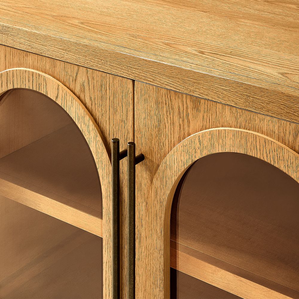 Crafted of American solid oak and engineered wood with oak veneers.