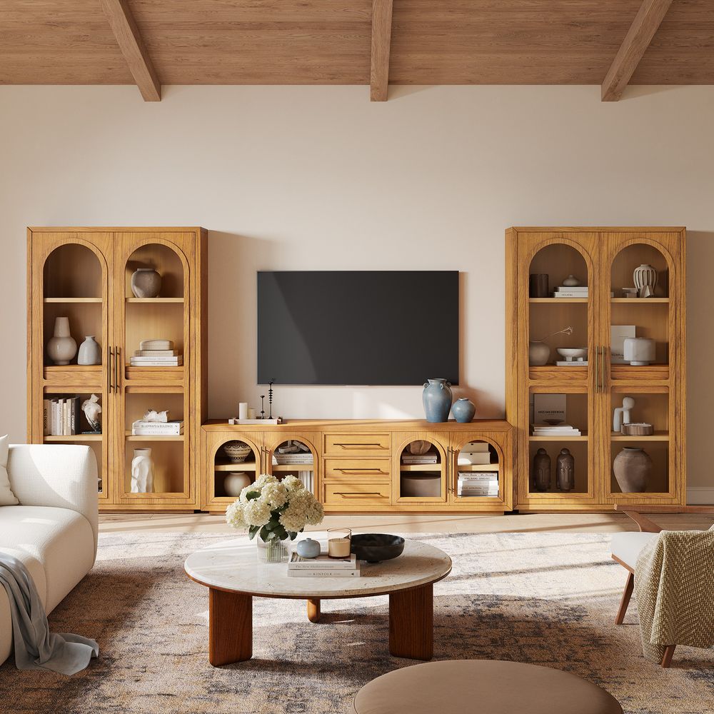 Lira 178" Oak Storage Media Console Set