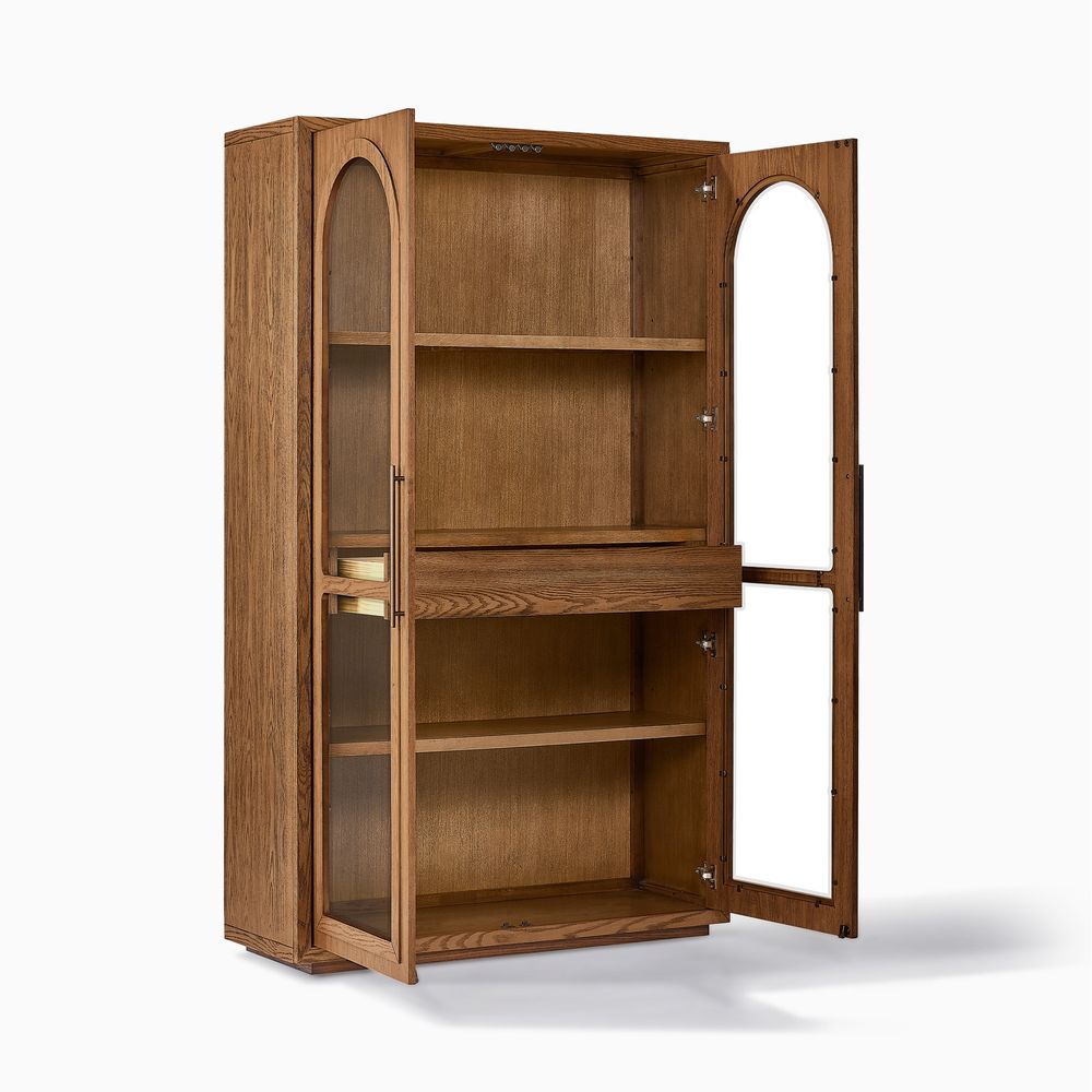 Crafted of American solid oak and engineered wood with oak veneers.All wood is kiln-dried for added durability.Finish is achieved through multistep process in which wood is wire brushed to highlight its rich grain.Wood glazing adds visual interest with greater depth and layering and enhances coloring.Drawers are crafted with precision dovetail joints for superior sturdiness and weight-bearing strength.Solid wood blocks are used at structural joints for reinforcement.Color perception may vary due to wood characteristics, lighting, and devices. Wood grain variation is expected, as each is unique.Anti-tip kit hardware (included) is highly recommended to provide protection against tipping of furniture.