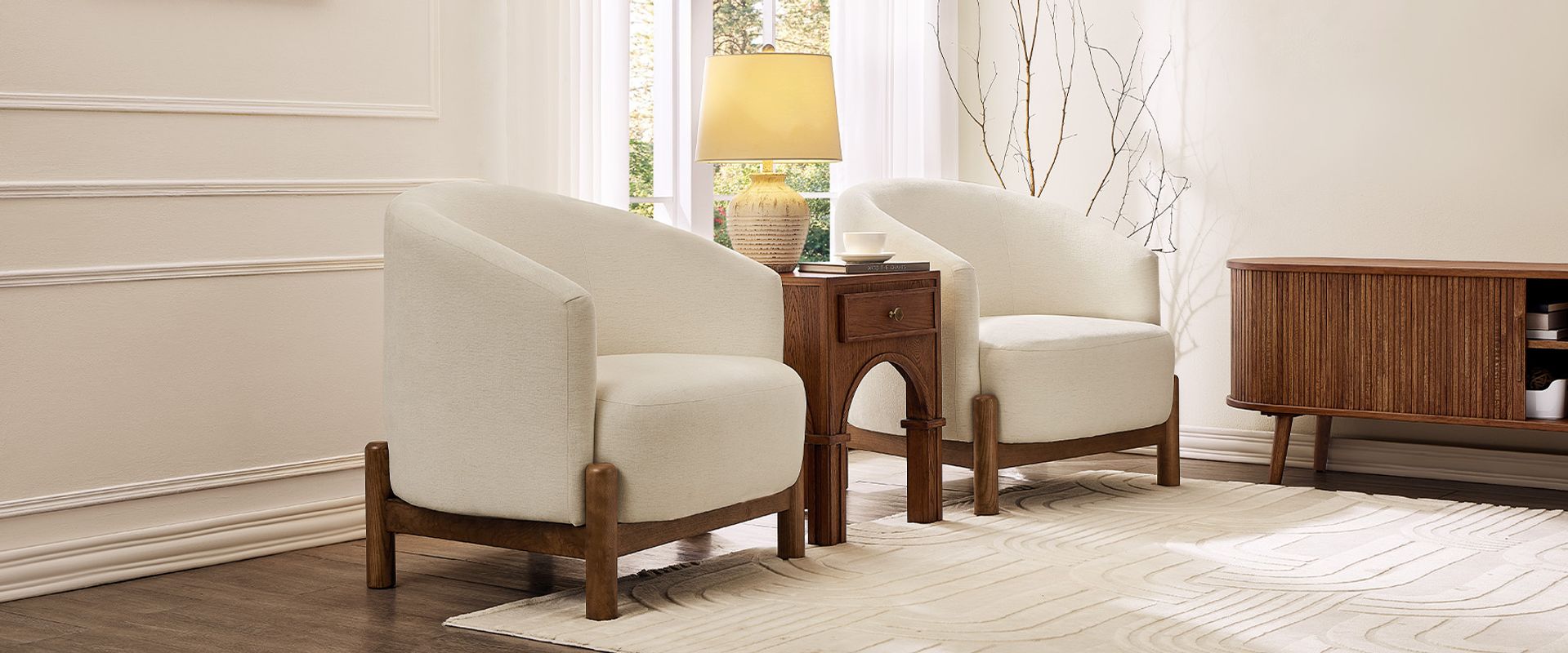 A cozy barrel silhouette that turns any corner into a stylish retreat.