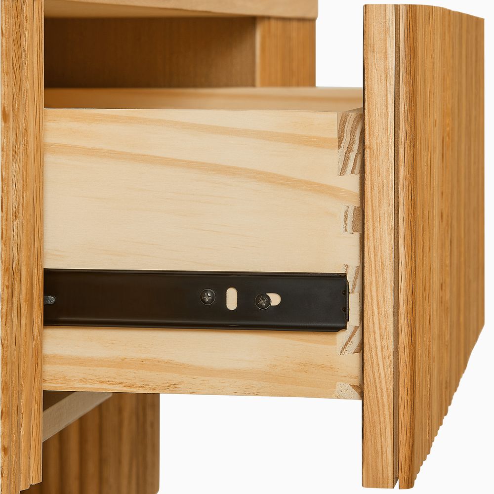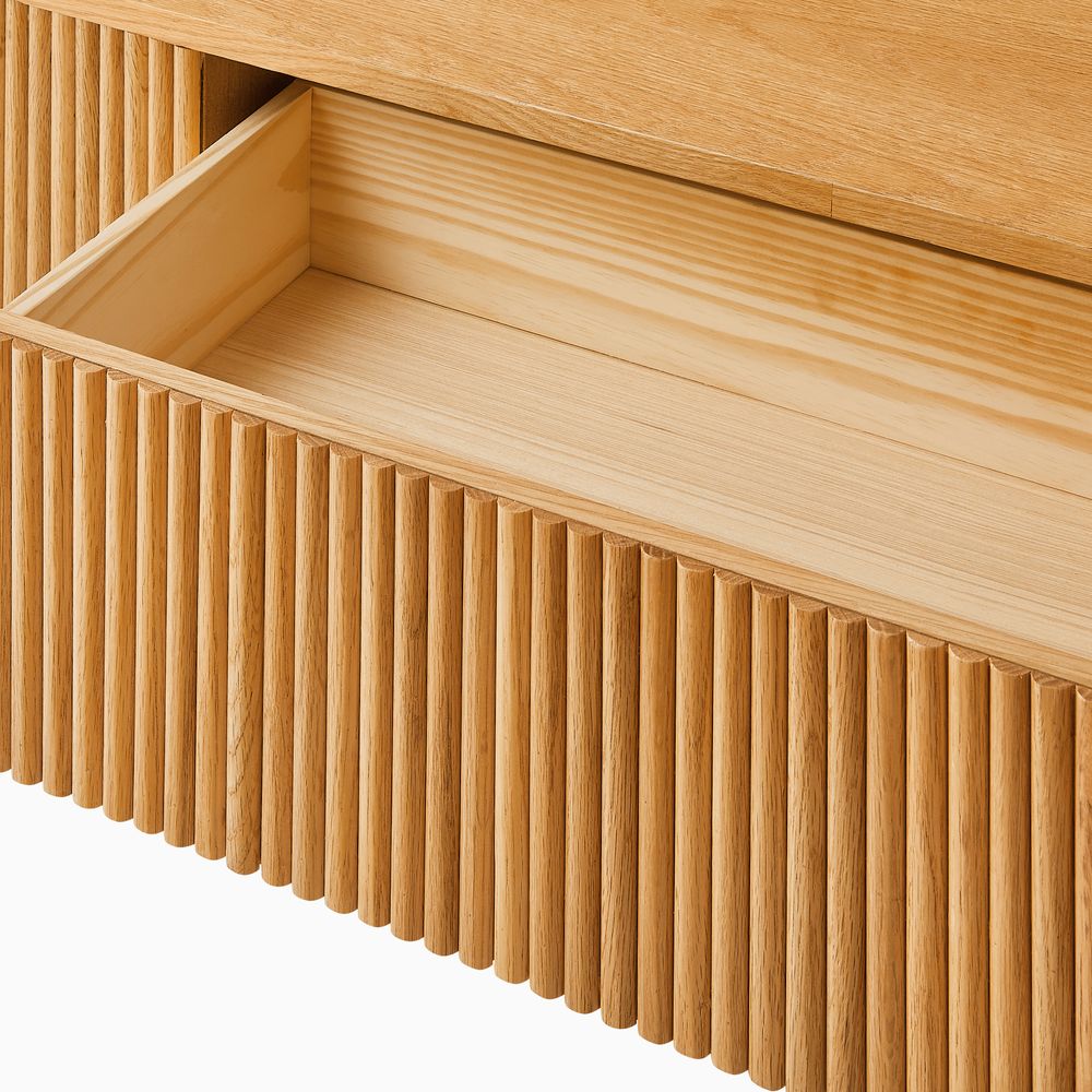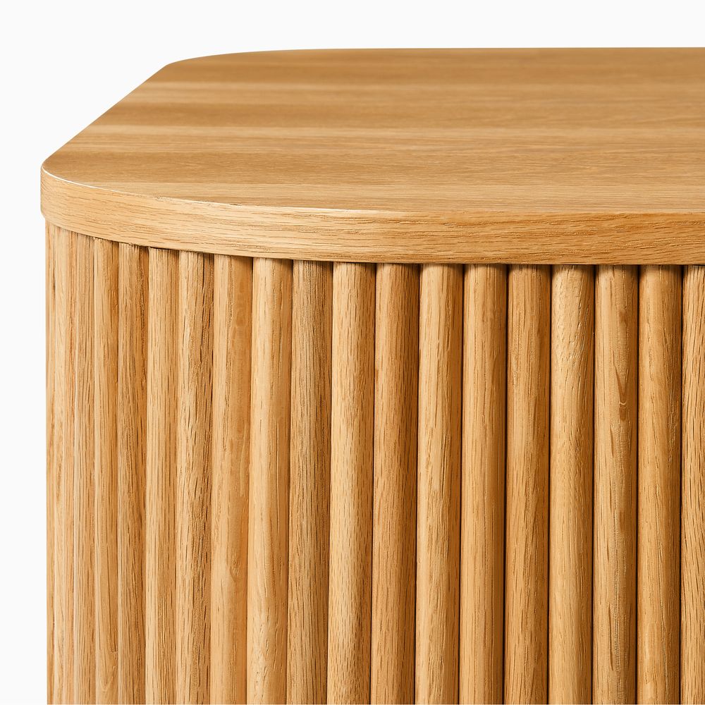 Crafted of American solid oak and engineered wood with oak veneers.All wood is kiln-dried for added durability.Finish is achieved through multistep process in which wood is wire brushed to highlight its rich grain.Wood glazing adds visual interest with greater depth and layering and enhances coloring.Drawers are crafted with precision dovetail joints for superior sturdiness and weight-bearing strength.Solid wood blocks are used at structural joints for reinforcement.Solid oak fluting presents a natural texture.Color perception may vary due to wood characteristics, lighting, and devices. Wood grain variation is expected, as each is unique.