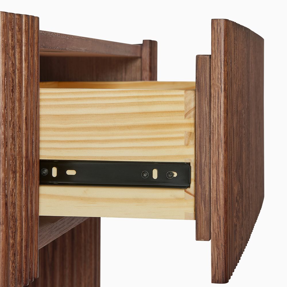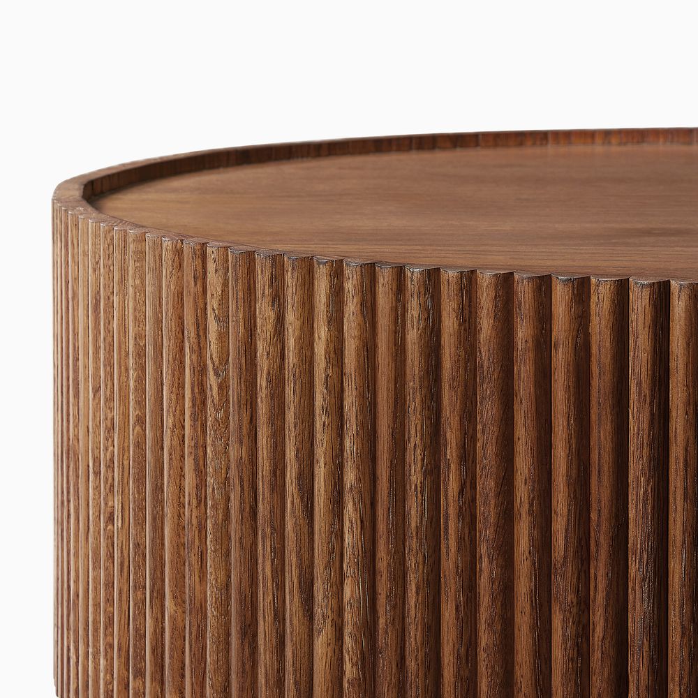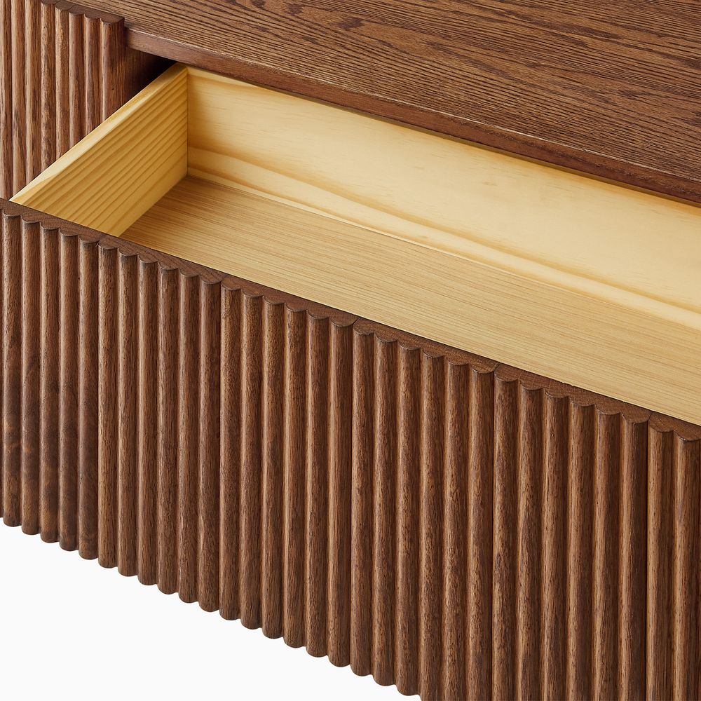 Crafted of American solid oak and engineered wood with oak veneers.All wood is kiln-dried for added durability.Finish is achieved through multistep process in which wood is wire brushed to highlight its rich grain.Wood glazing adds visual interest with greater depth and layering and enhances coloring.Drawers are crafted with precision dovetail joints for superior sturdiness and weight-bearing strength.Solid wood blocks are used at structural joints for reinforcement.Solid oak fluting presents a natural texture.Color perception may vary due to wood characteristics, lighting, and devices. Wood grain variation is expected, as each is unique.
