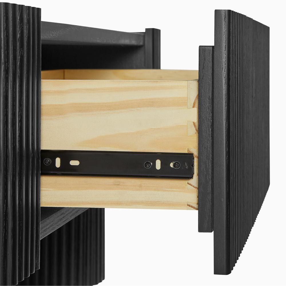 Crafted of American solid oak and engineered wood with oak veneers.All wood is kiln-dried for added durability.Finish is achieved through multistep process in which wood is wire brushed to highlight its rich grain.Wood glazing adds visual interest with greater depth and layering and enhances coloring.Drawers are crafted with precision dovetail joints for superior sturdiness and weight-bearing strength.Solid wood blocks are used at structural joints for reinforcement.Solid oak fluting presents a natural texture.Color perception may vary due to wood characteristics, lighting, and devices. Wood grain variation is expected, as each is unique.