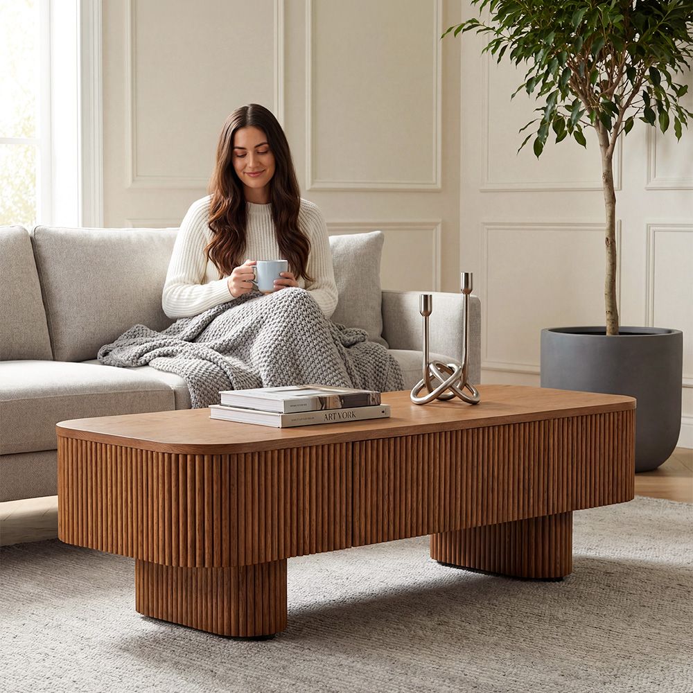 Designed with a plump, rounded wooden strip, the Marisol collection combines durability with style. The warm, wooden texture and ribbed detailing create a modern look, offering a smooth, polished surface that enhances the natural grain and color while providing protection.