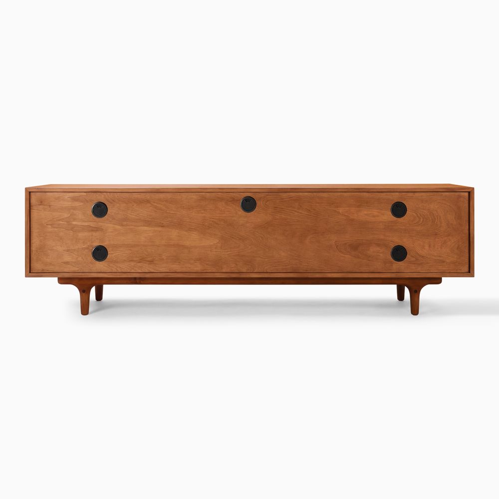 Crafted of tulipwood and plywood with tulipwood veneers.All wood is kiln-dried for added durability.Drawers are crafted with precision dovetail joints for superior sturdiness and weight-bearing strength.Divide interiors for organized, functional storage solutions.Designed for TVs up to 80", 5 cord cutouts in back panel for cable management.Color perception may vary due to wood characteristics, lighting, and devices. Wood grain variation is expected, as each is unique.