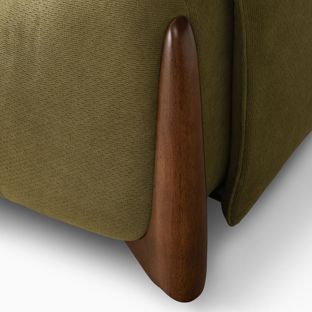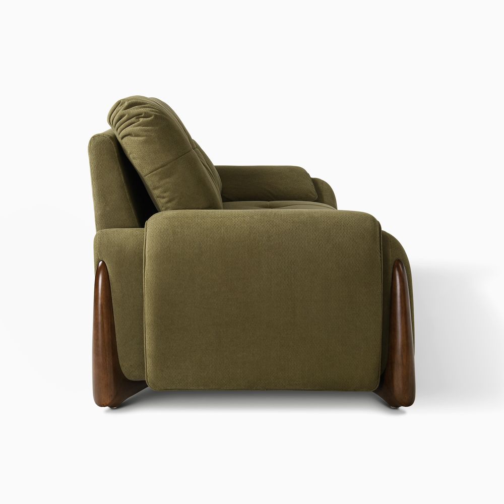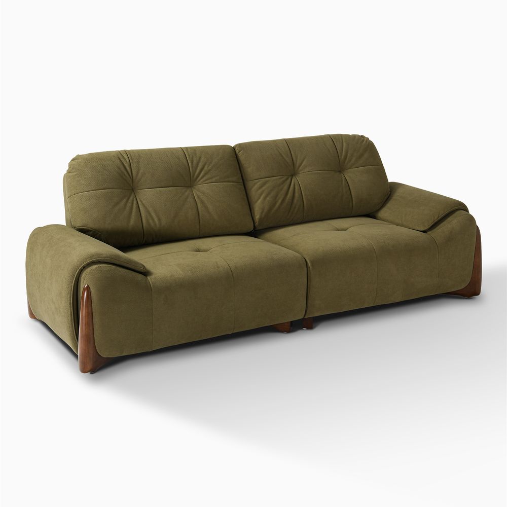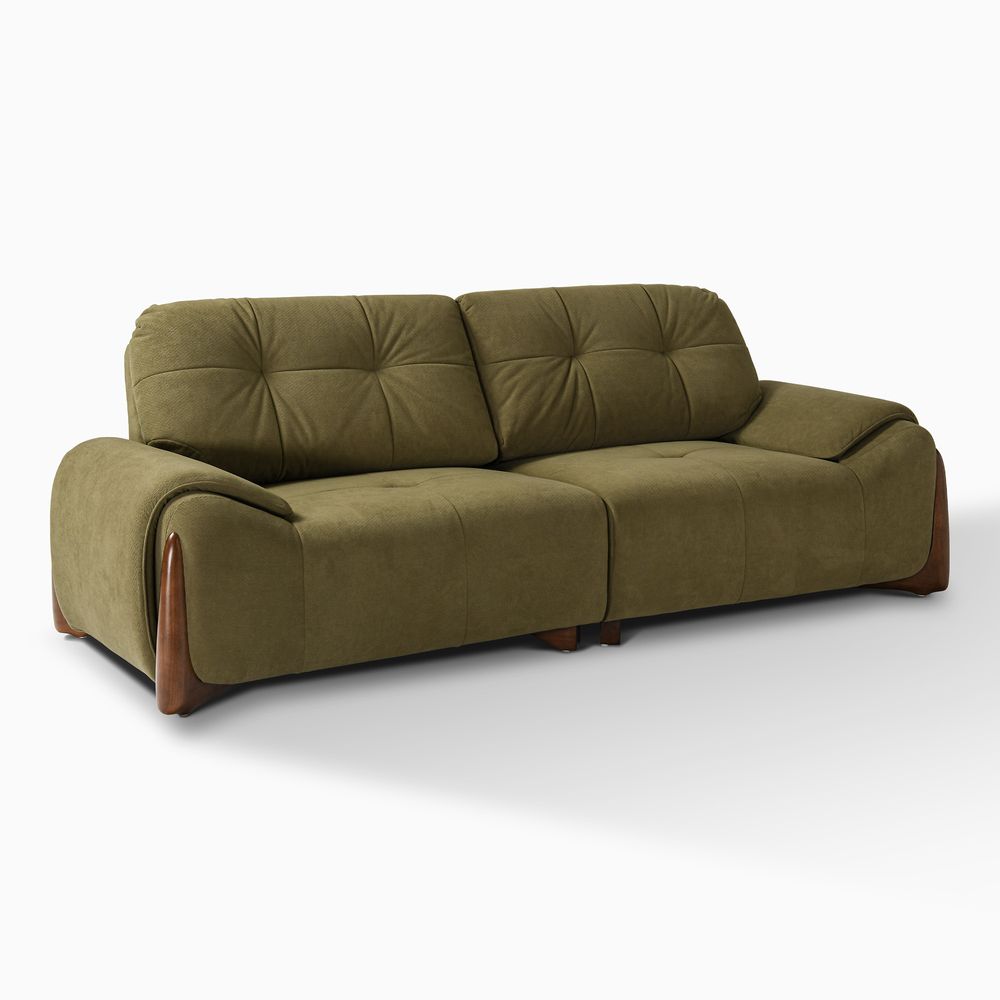 The Morgenlys sofa pulls from cozy retro vibes and modern comfort. Plush, tufted cushions pair with curved wood accents, blending a welcoming look with supportive seating. Perfect for adding a laid - back, stylish touch to living rooms.
