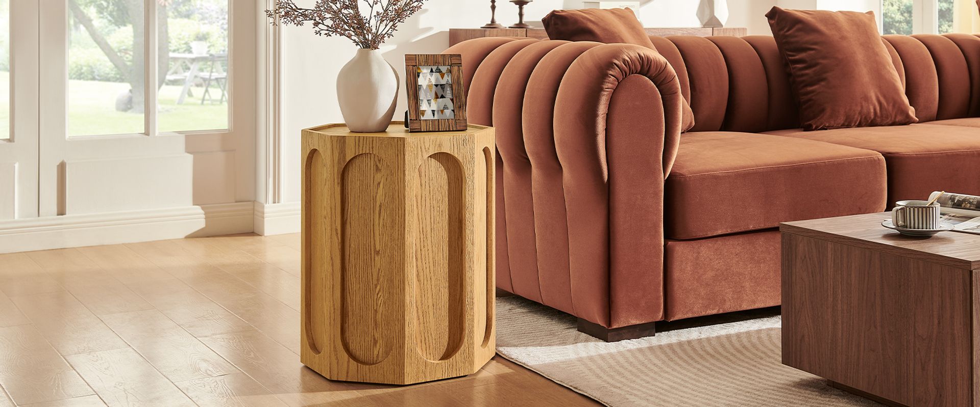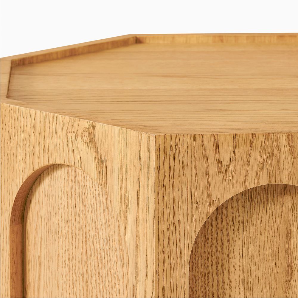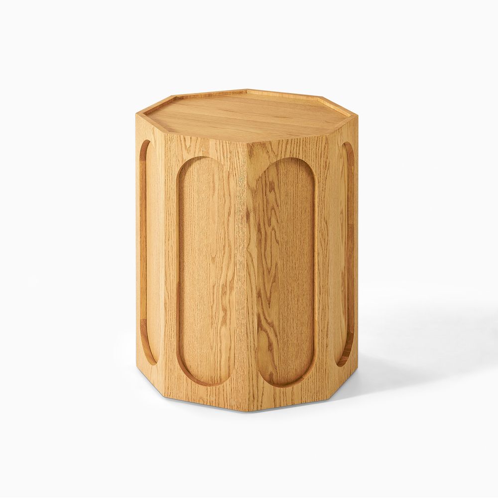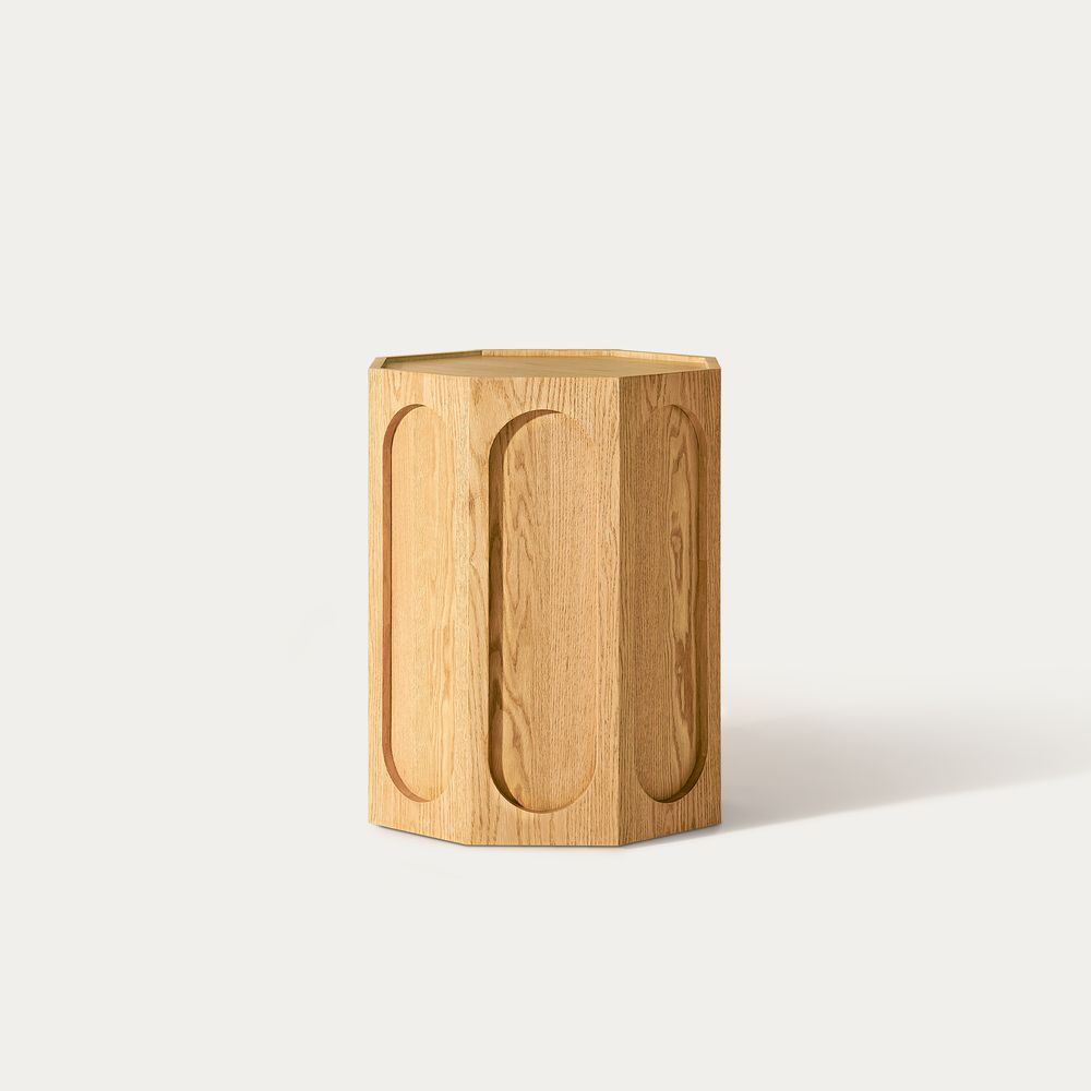 Neci is an antique-inspired side table that elevates the sculptural octagonal shape with carved oval lines on each side and a gently caved-in top. This design strikes a balance between vintage elegance and clean lines, offering a piece that feels timeless while maintaining modern minimalism—perfect for a living room seeking bold lines and a versatile accent.