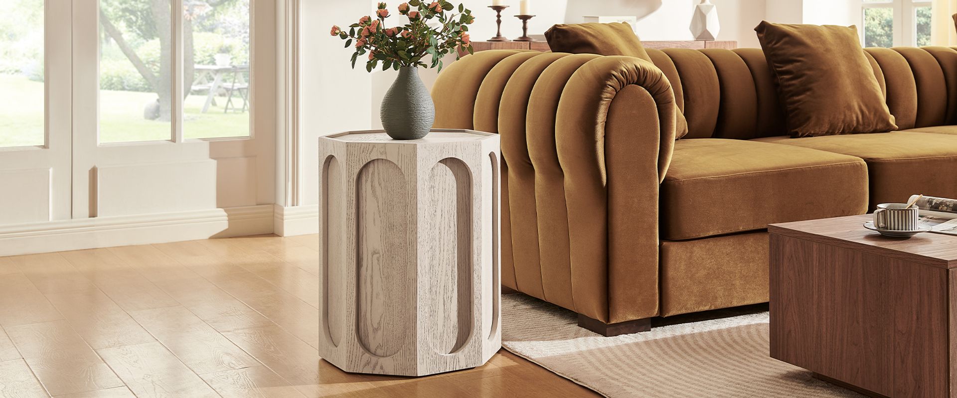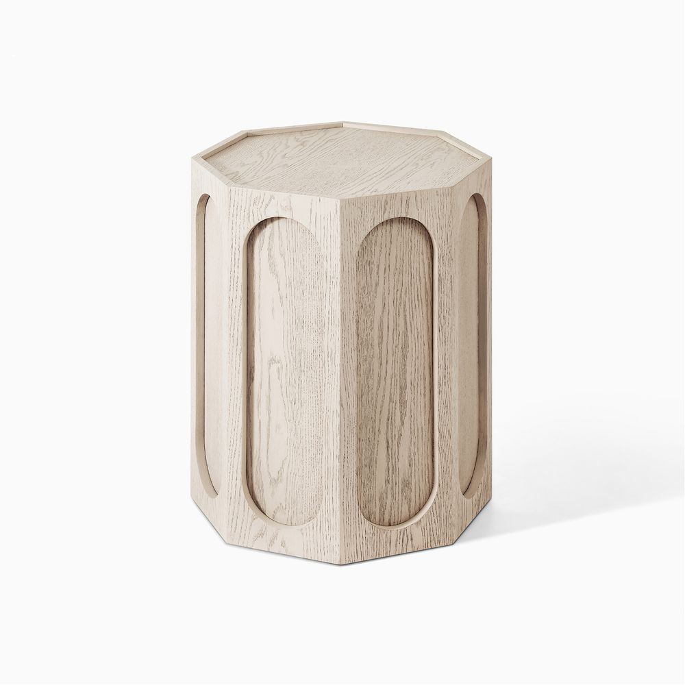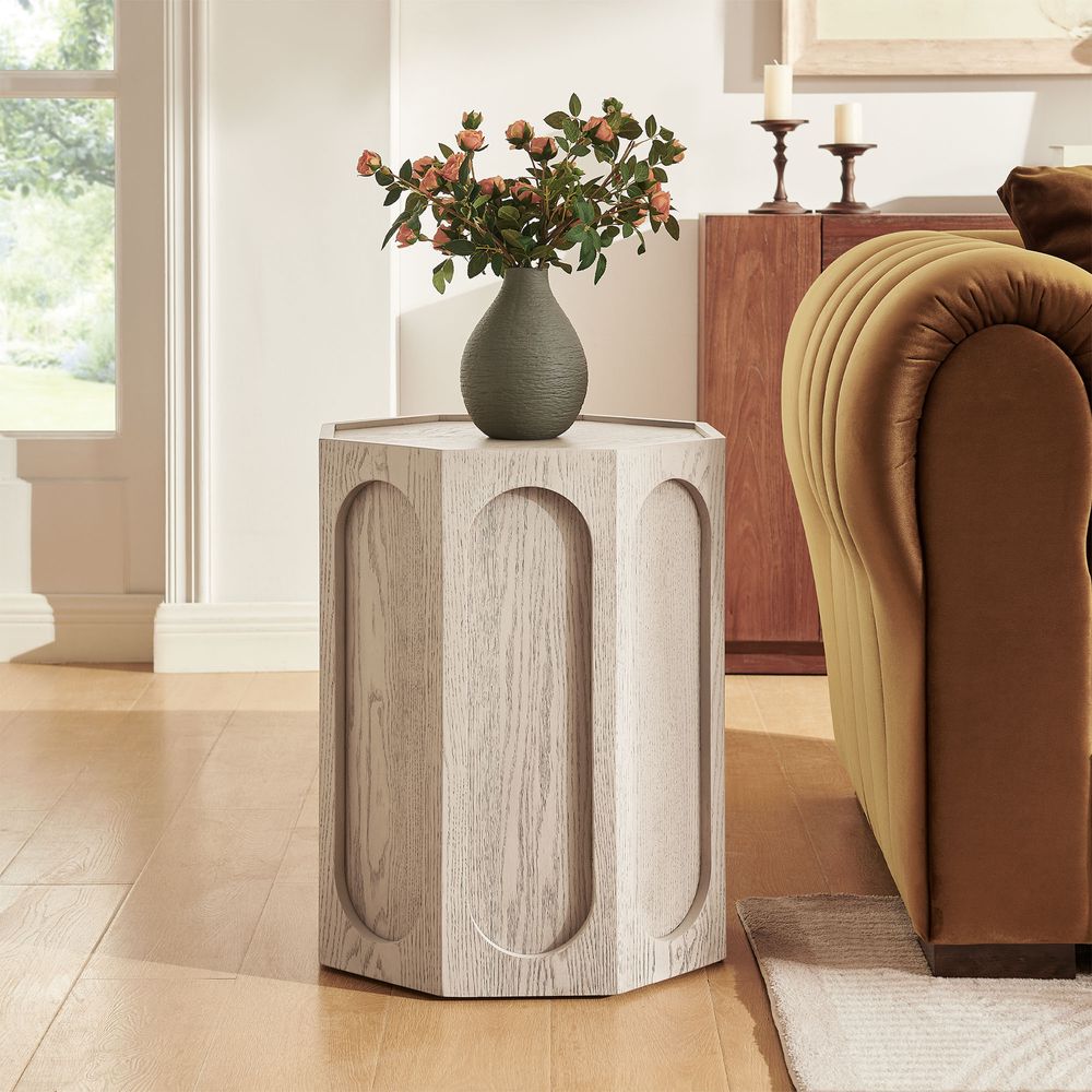 Neci is an antique-inspired side table that elevates the sculptural octagonal shape with carved oval lines on each side and a gently caved-in top. This design strikes a balance between vintage elegance and clean lines, offering a piece that feels timeless while maintaining modern minimalism—perfect for a living room seeking bold lines and a versatile accent.