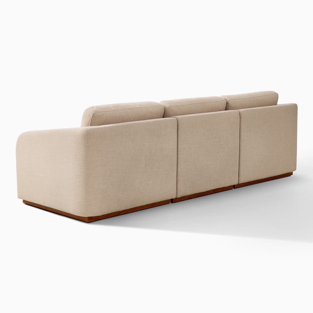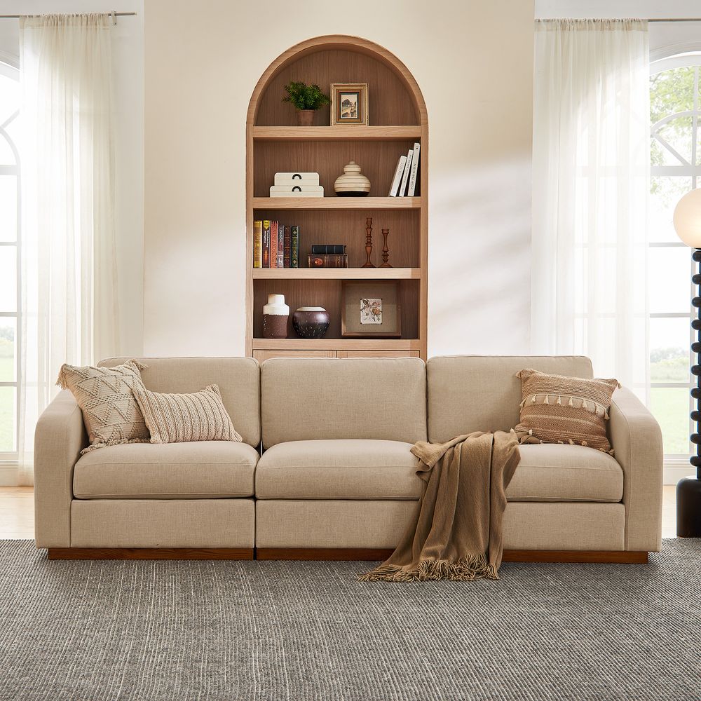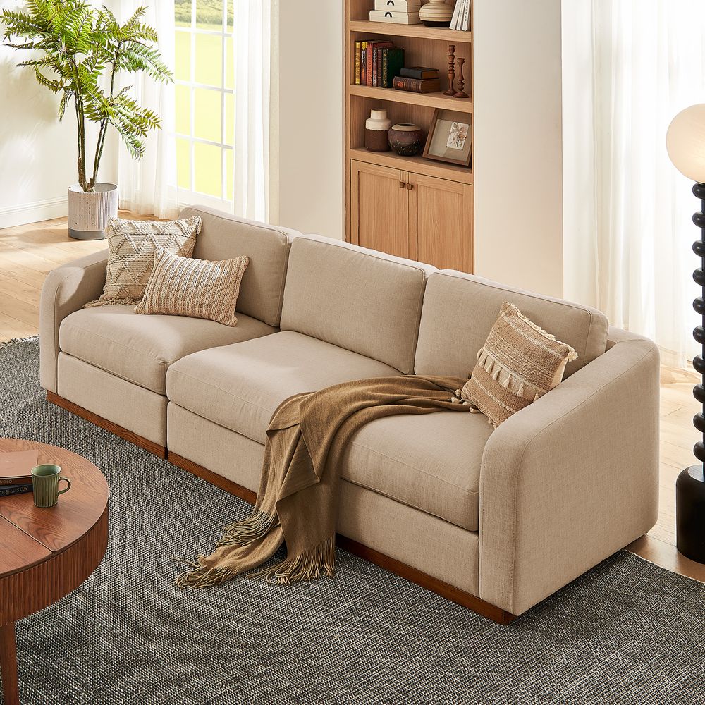 Preconfigured sofa consists of 1 left armchair, 1 right armchair, 1 armless chair.Solid ash wood and plywood frame.This richly textured tight weave is inherently stain resistant and highly durable.Seat cushions have fiber-wrapped, high-resiliency polyurethane foam cores.Sinuous spring suspension with reinforced elastic webbing.The upholstery on the sofa adds soft padding for cozy, stylish seating surfaces.Cushion covers unzip to remove.Included sectional connectors ensure that components are secured tightly together; lift upward to release.Items purchased at different times may not match due to different dye lots, also color perception can vary by lighting and devices.