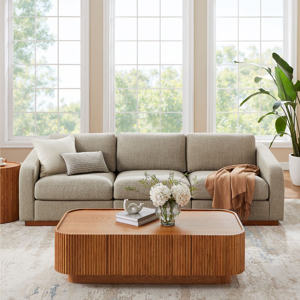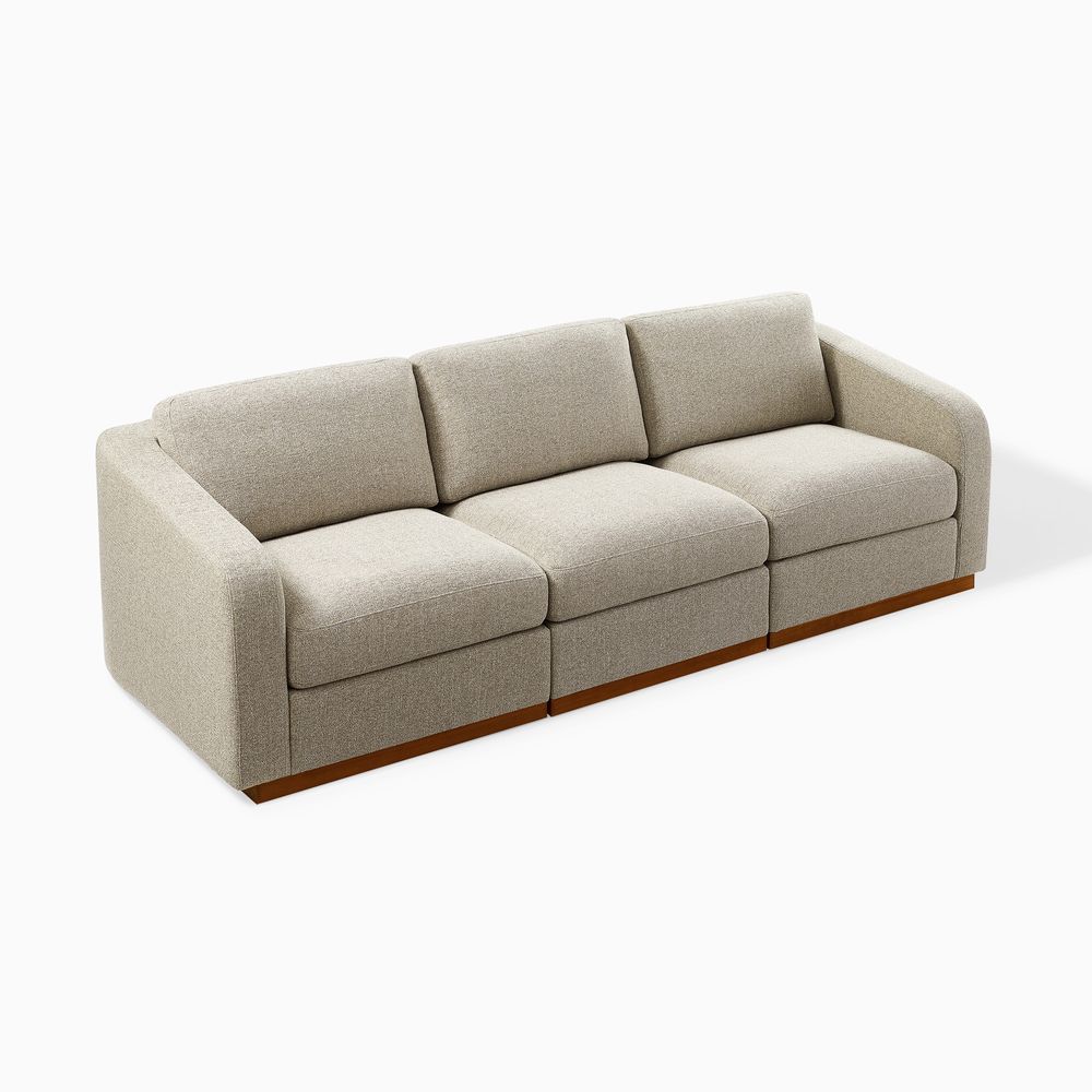 Preconfigured sofa consists of 1 left armchair, 1 right armchair, 1 armless chair.Solid ash wood and plywood frame.Lightweight and breathable, linen fabric blends casual elegance with everyday comfort.Seat cushions have fiber-wrapped, high-resiliency polyurethane foam cores.Sinuous spring suspension with reinforced elastic webbing.The upholstery on the sofa adds soft padding for cozy, stylish seating surfaces.Cushion covers unzip to remove.Included sectional connectors ensure that components are secured tightly together; lift upward to release.Items purchased at different times may not match due to different dye lots, also color perception can vary by lighting and devices.