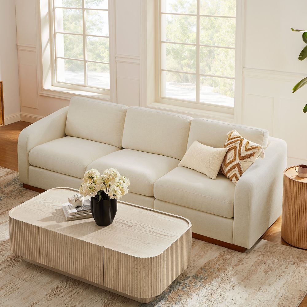 Preconfigured sofa consists of 1 left armchair, 1 right armchair, 1 armless chair.Solid ash wood and plywood frame.Lightweight and breathable, linen fabric blends casual elegance with everyday comfort.Seat cushions have fiber-wrapped, high-resiliency polyurethane foam cores.Sinuous spring suspension with reinforced elastic webbing.The upholstery on the sofa adds soft padding for cozy, stylish seating surfaces.Cushion covers unzip to remove.Included sectional connectors ensure that components are secured tightly together; lift upward to release.Items purchased at different times may not match due to different dye lots, also color perception can vary by lighting and devices.
