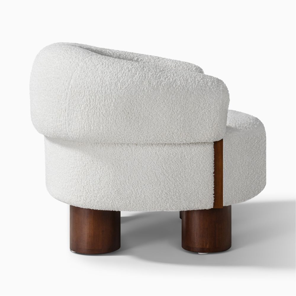 Nixlandy accent chair pairs plush, teddy-like upholstery with sculptural wood details. The rounded shape and sturdy wooden base make it a stylish, inviting piece that’s both an artistic statement and a cozy escape.