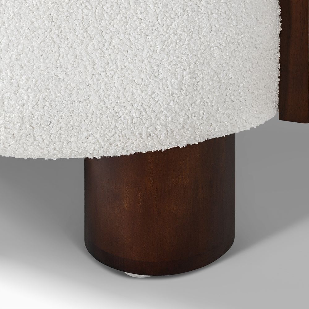 Solid wood and plywood frame.Bouclé fabric with subtle striation and a cozy handfeel.Seat cushions have fiber-wrapped, high-resiliency polyurethane foam cores.The upholstery on the chair adds soft padding for cozy, stylish seating surfaces.Items purchased at different times may not match due to different dye lots, also color perception can vary by lighting and devices.