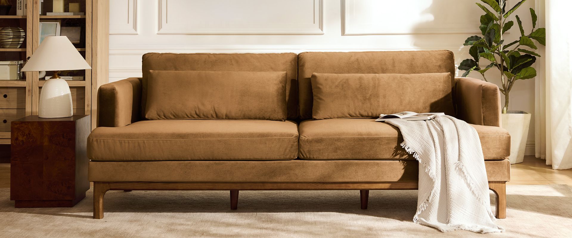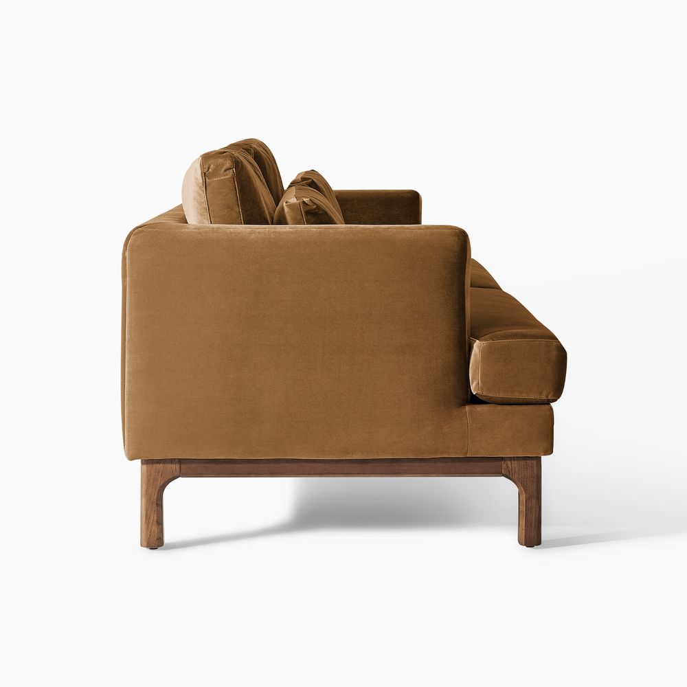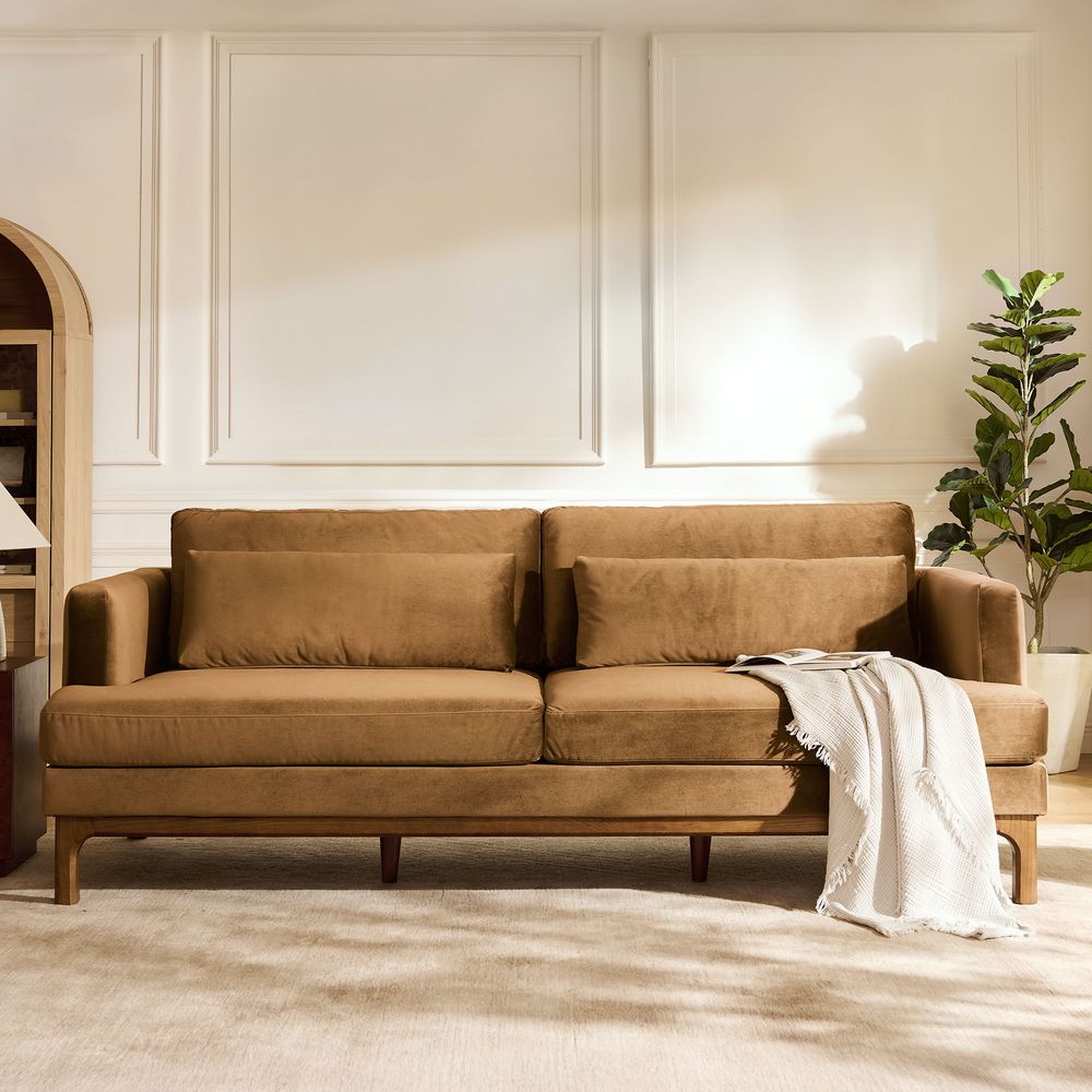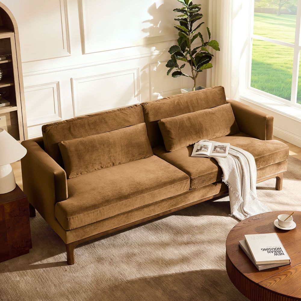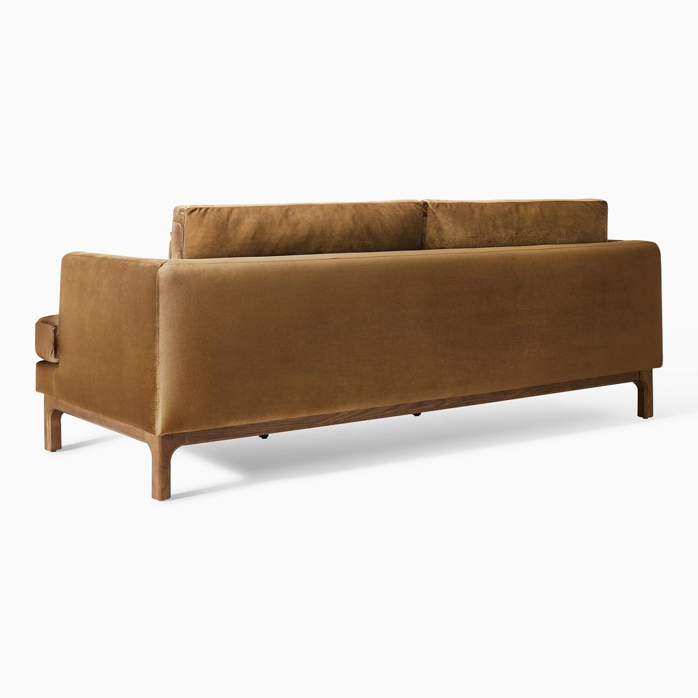 American solid oak and plywood frame.A go-anywhere, durable velvet with a soft, shortpile and matte finish.Seat cushions have fiber-wrapped, high-resiliency polyurethane foam cores.Sinuous spring suspension with reinforced elastic webbing.90" sofa designed for 3-4 people's gathering.2 back cushions and 2 lumbar pillows are included.Cushion covers unzip to remove.Items purchased at different times may not match due to different dye lots, also color perception can vary by lighting and devices.