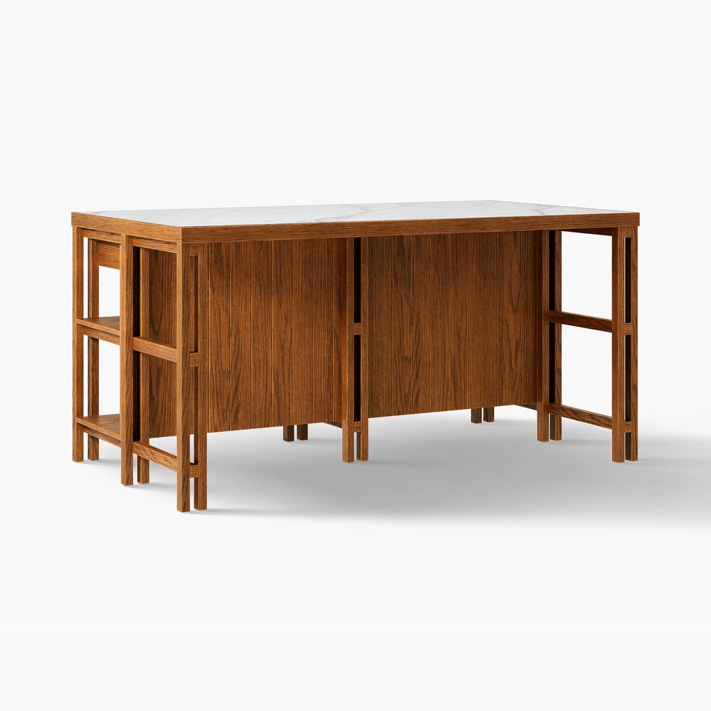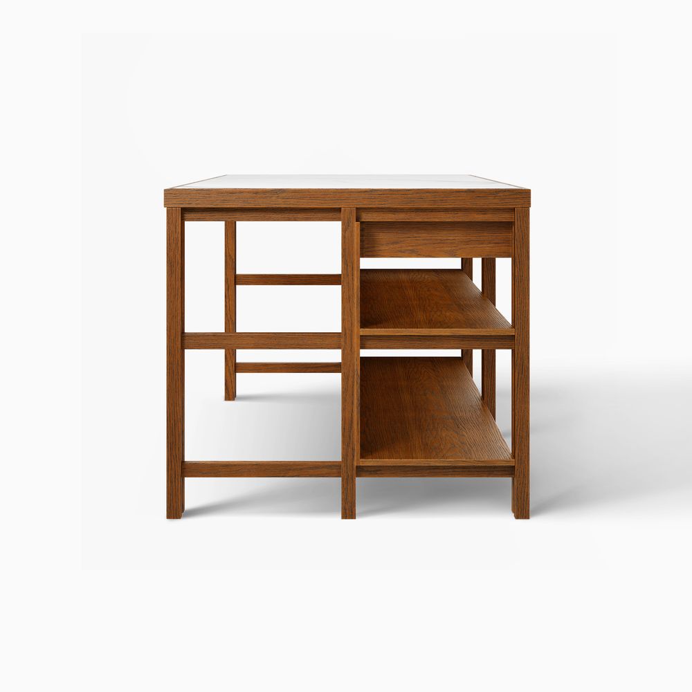 Crafted of American solid oak, solid wood, sintered stone, and plywood with oak veneers.All wood is kiln-dried for added durability.Drawers are crafted with precision dovetail joints for superior sturdiness and weight-bearing strength.Stain-resistant sintered stone tabletop offers effortless cleaning.Divide interiors for organized, functional storage solutions.Accommodates up to 2 counter stools.Color perception may vary due to wood characteristics, lighting, and devices. Wood grain variation is expected, as each is unique.Variation in the veining of sintered stone is to be expected, as each piece will be unique.