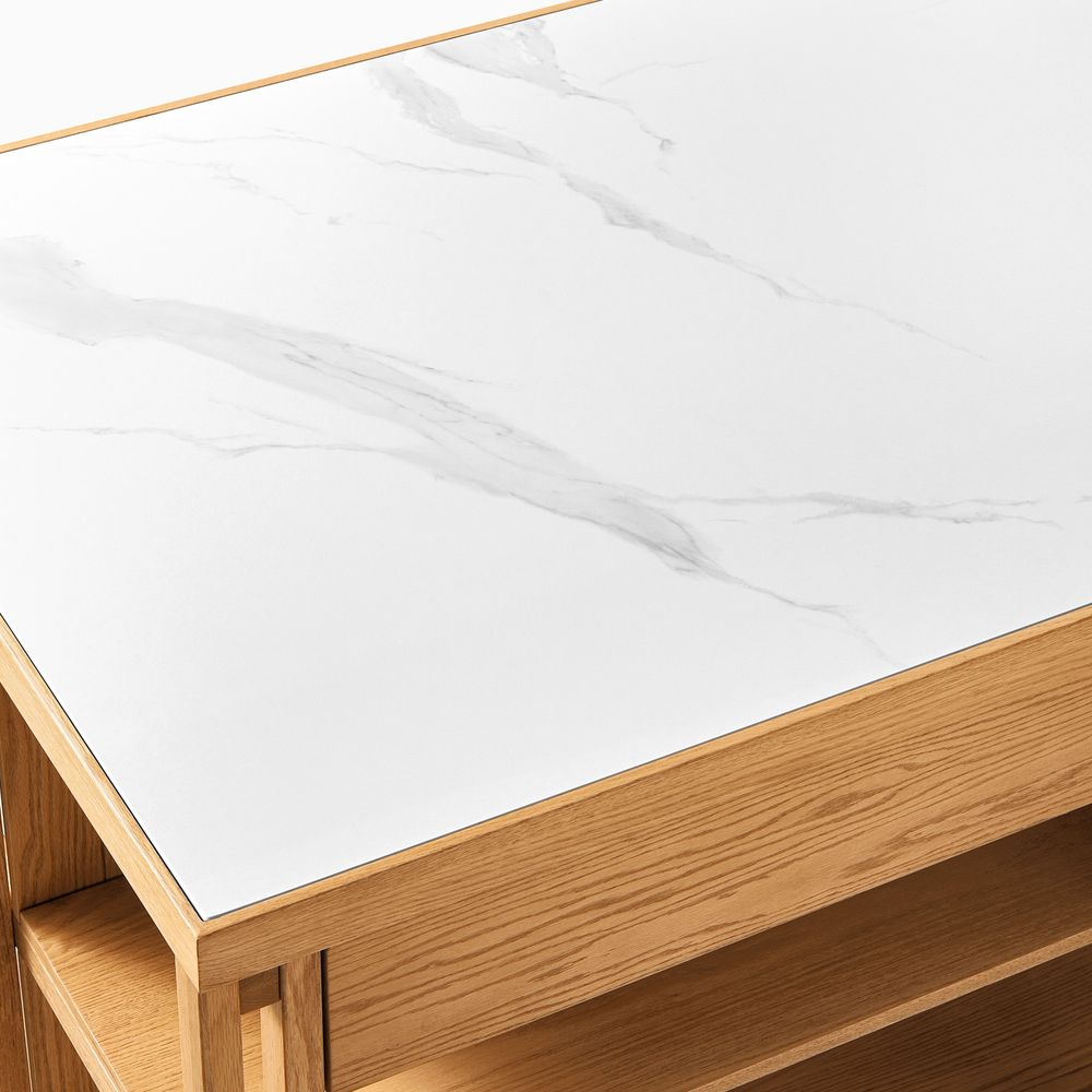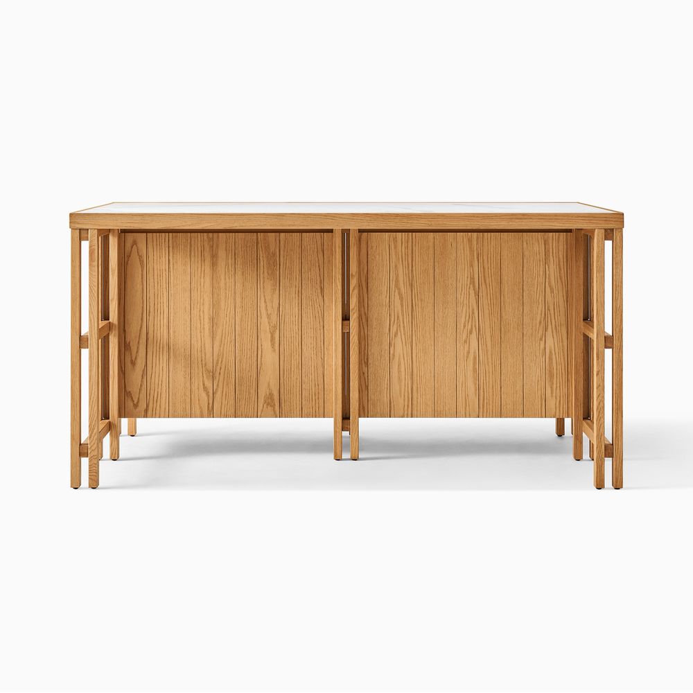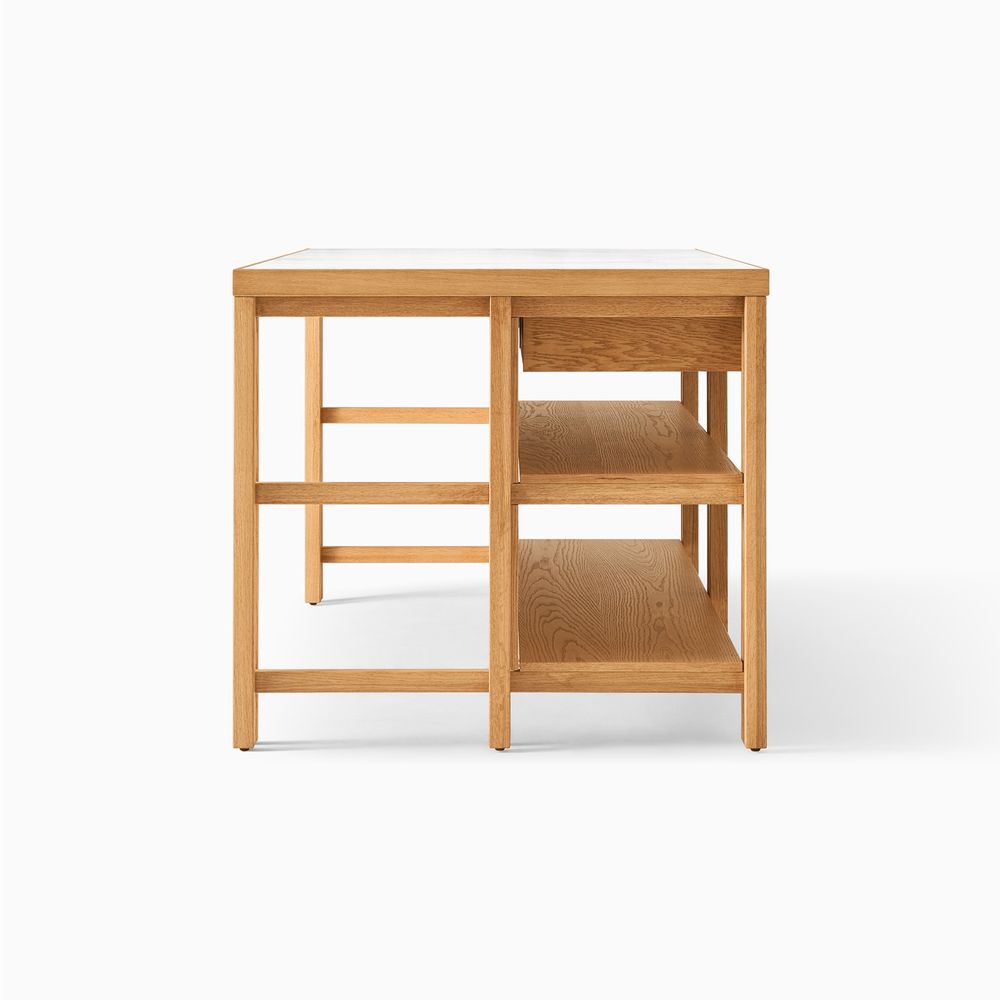 Crafted of American solid oak, solid wood, sintered stone, and plywood with oak veneer.All wood is kiln-dried for added durability.Drawers are crafted with precision dovetail joints for superior sturdiness and weight-bearing strength.Stain-resistant sintered stone tabletop offers effortless cleaning.Divide interiors for organized, functional storage solutions.Accommodates up to 2 counter stools.Color perception may vary due to wood characteristics, lighting, and devices. Wood grain variation is expected, as each is unique.Variation in the veining of sintered stone is to be expected, as each piece will be unique.
