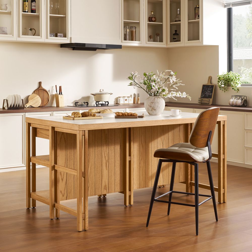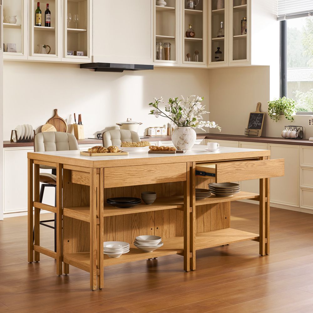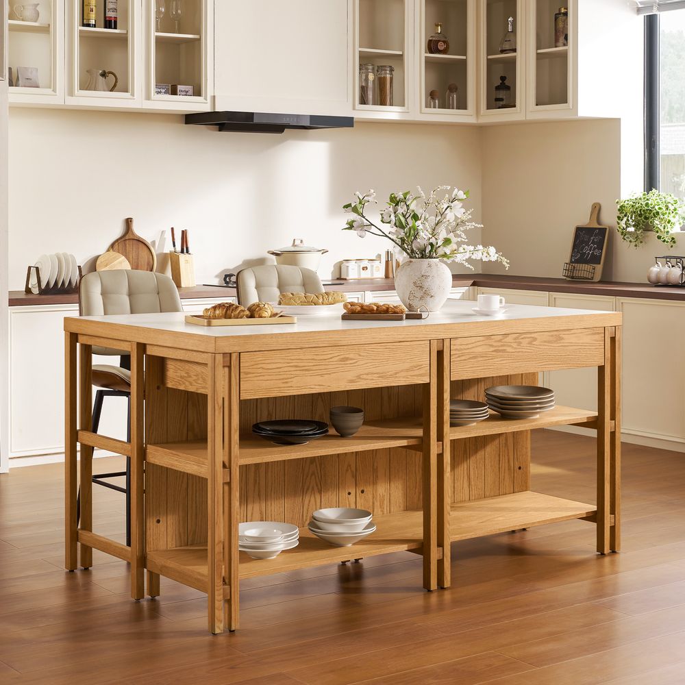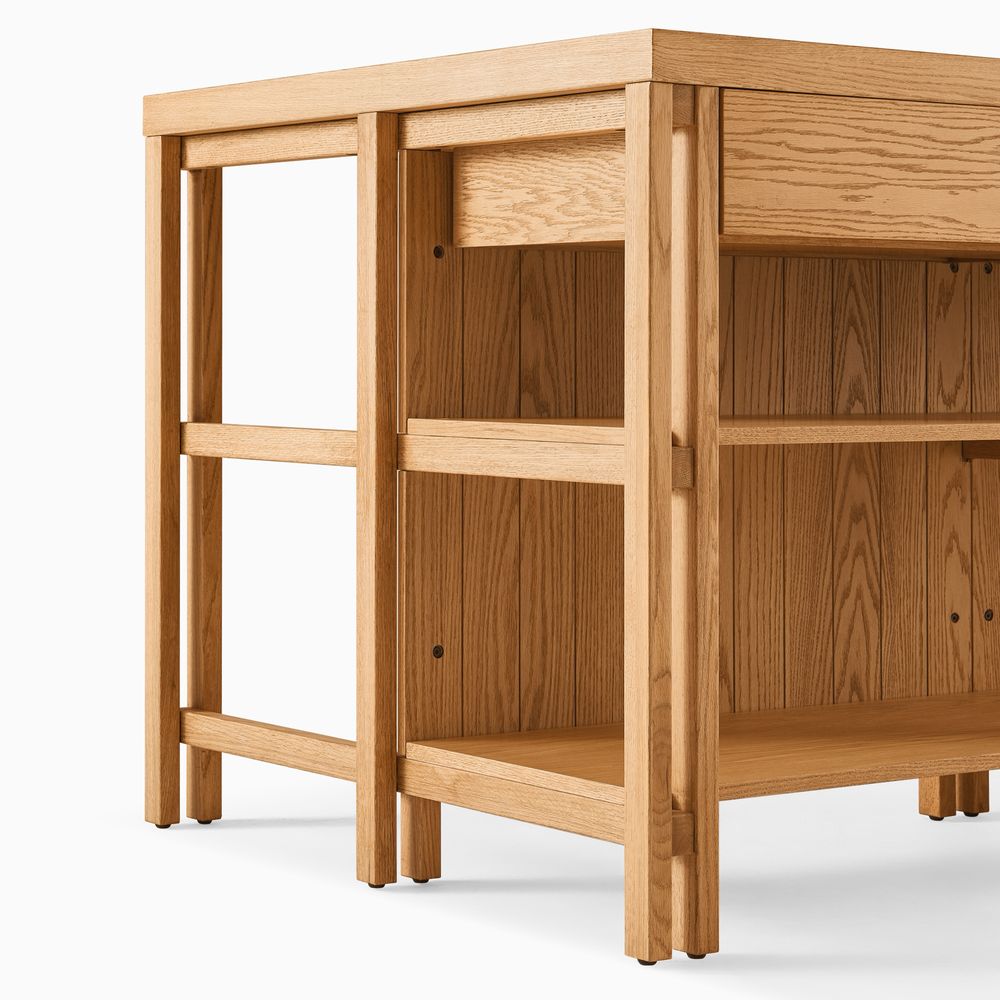 Crafted of American solid oak, solid wood, sintered stone, and plywood with oak veneer.All wood is kiln-dried for added durability.Drawers are crafted with precision dovetail joints for superior sturdiness and weight-bearing strength.Stain-resistant sintered stone tabletop offers effortless cleaning.Divide interiors for organized, functional storage solutions.Accommodates up to 2 counter stools.Color perception may vary due to wood characteristics, lighting, and devices. Wood grain variation is expected, as each is unique.Variation in the veining of sintered stone is to be expected, as each piece will be unique.