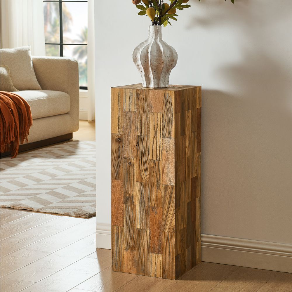 Meticulously assembled from old elm blocks, Ole side table shares the unique organic swirls, knots, and tonal shifts, making each piece a conversation-starting work of art.