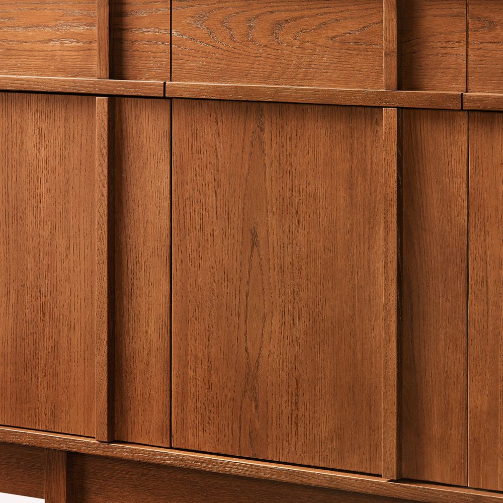Ragnar collection harmonizes nostalgic modernity with beautiful, its rich wood grain surfaces flowing seamlessly into push-to-open doors. The minimalist silhouette features versatile storage. The crossbar base echoes retro craftsmanship, transforming practical storage into a dialogue between heritage and innovation for the discerning modern home.