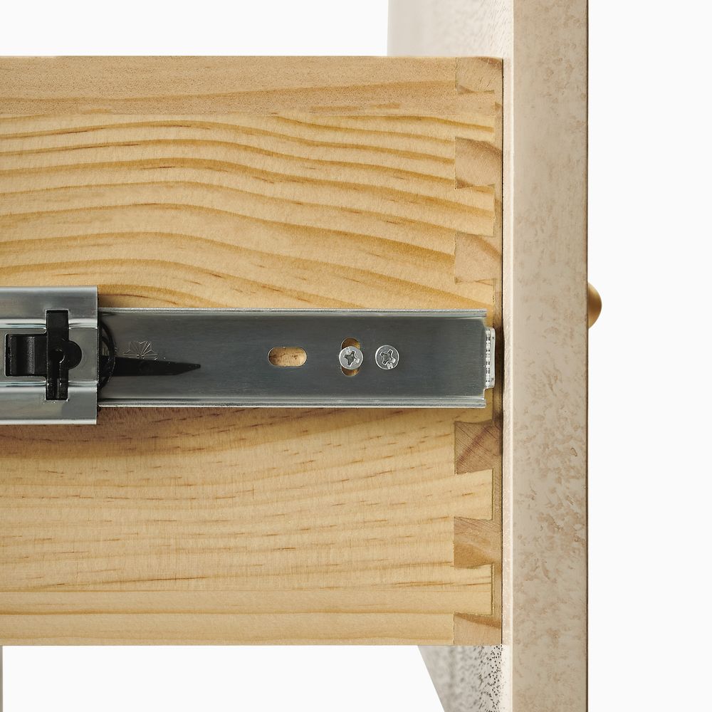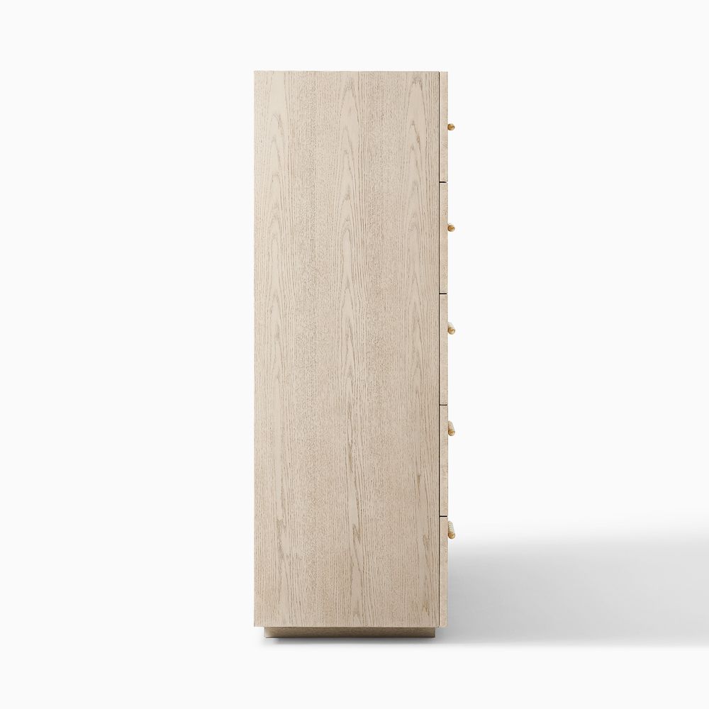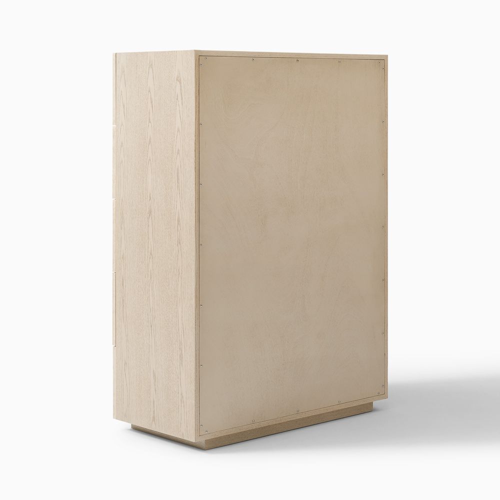 Crafted of resin, solid wood and engineered wood with American oak veneers.All wood is kiln-dried for added durability.Finish is achieved through multistep process in which wood is wire brushed to highlight its rich grain.Wood glazing adds visual interest with greater depth and layering and enhances coloring.Travertine-inspired texture recreates the look and touch of aged stone.Solid wood blocks are used at structural joints for reinforcement.Drawers are crafted with precision dovetail joints for superior sturdiness and weight-bearing strength.Anti-tip kit hardware (included) is highly recommended to provide protection against tipping of furniture.Color perception may vary due to wood characteristics, lighting, and devices. Wood grain variation is expected, as each is unique.
