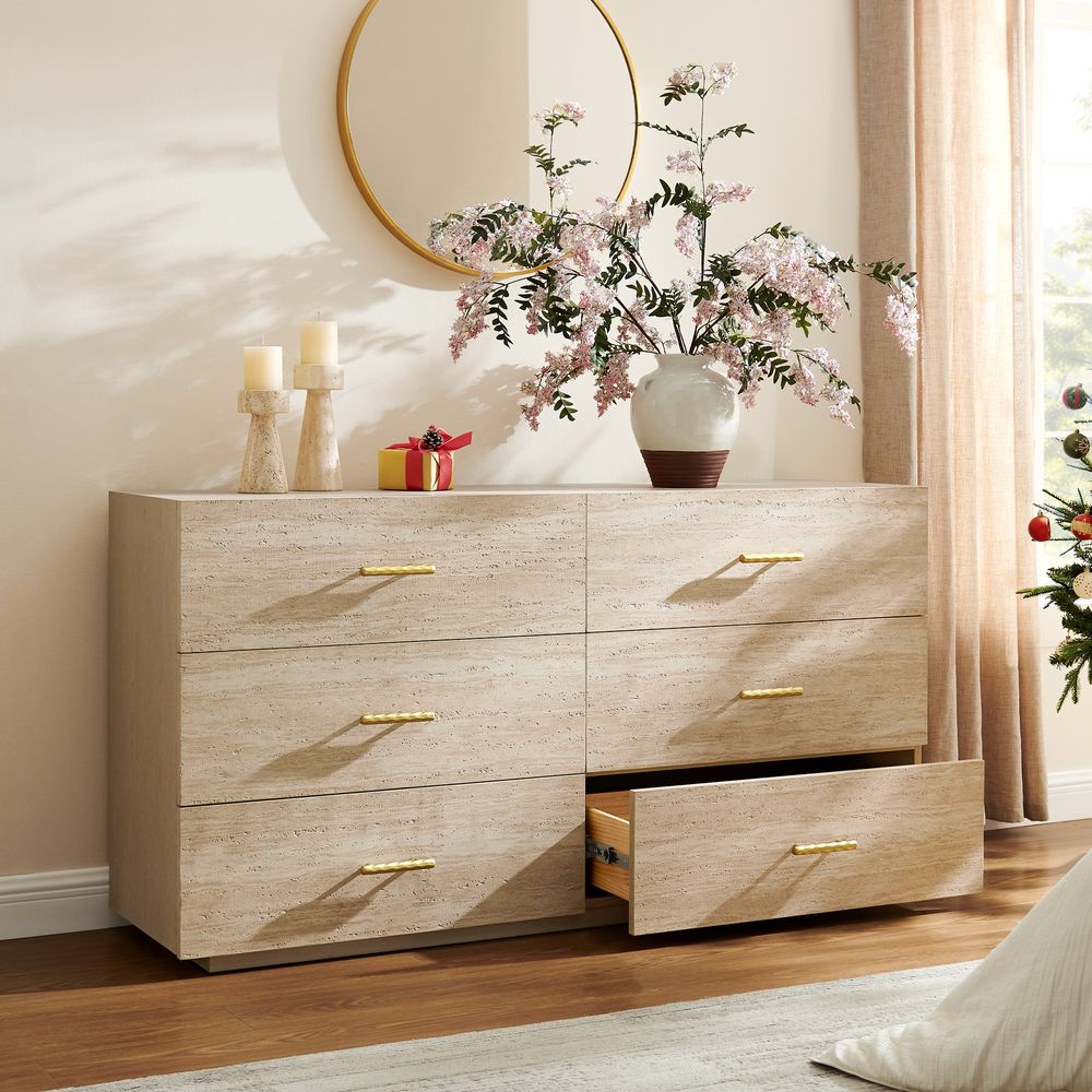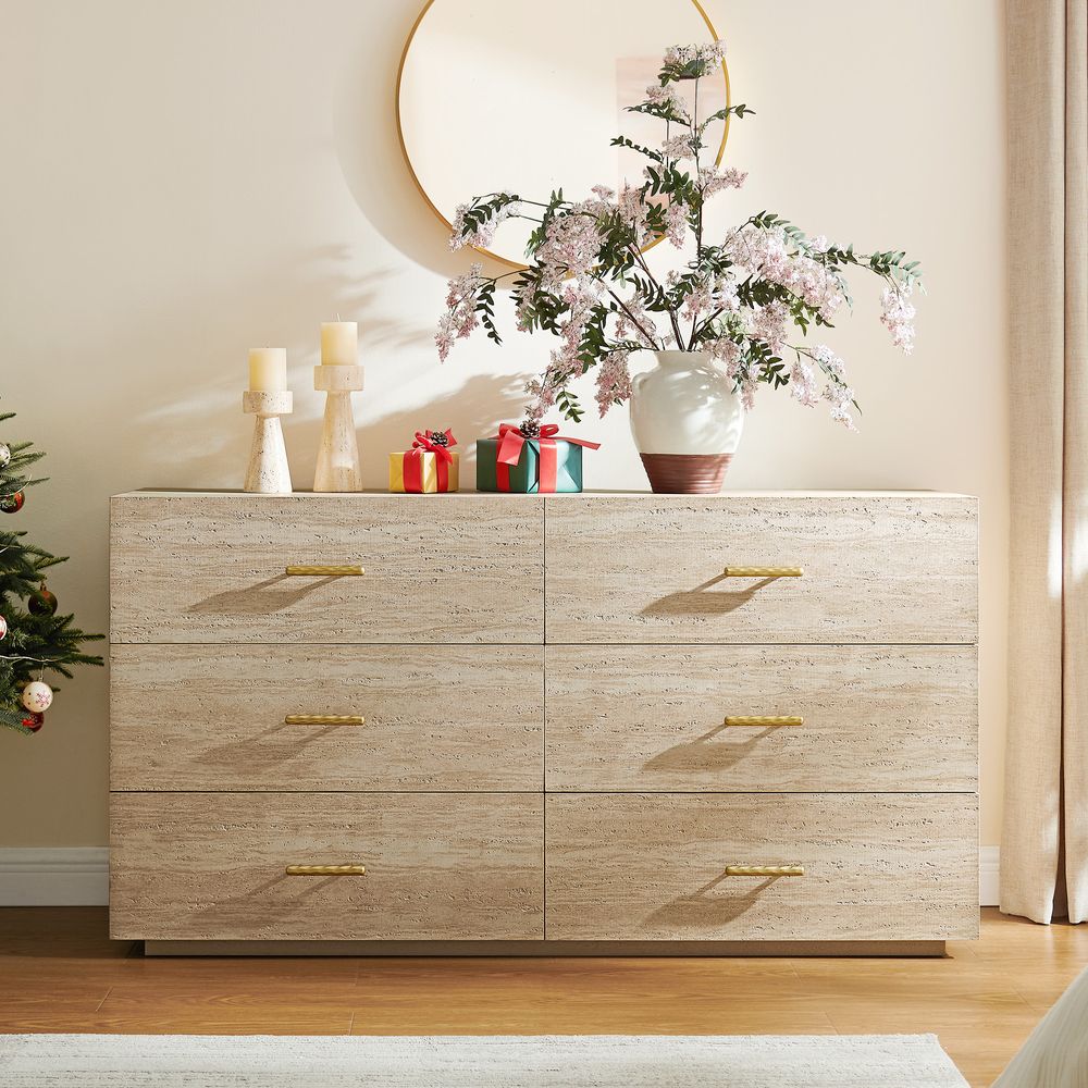 Renata 65" Travertine-Textured 6-Drawer Dresser