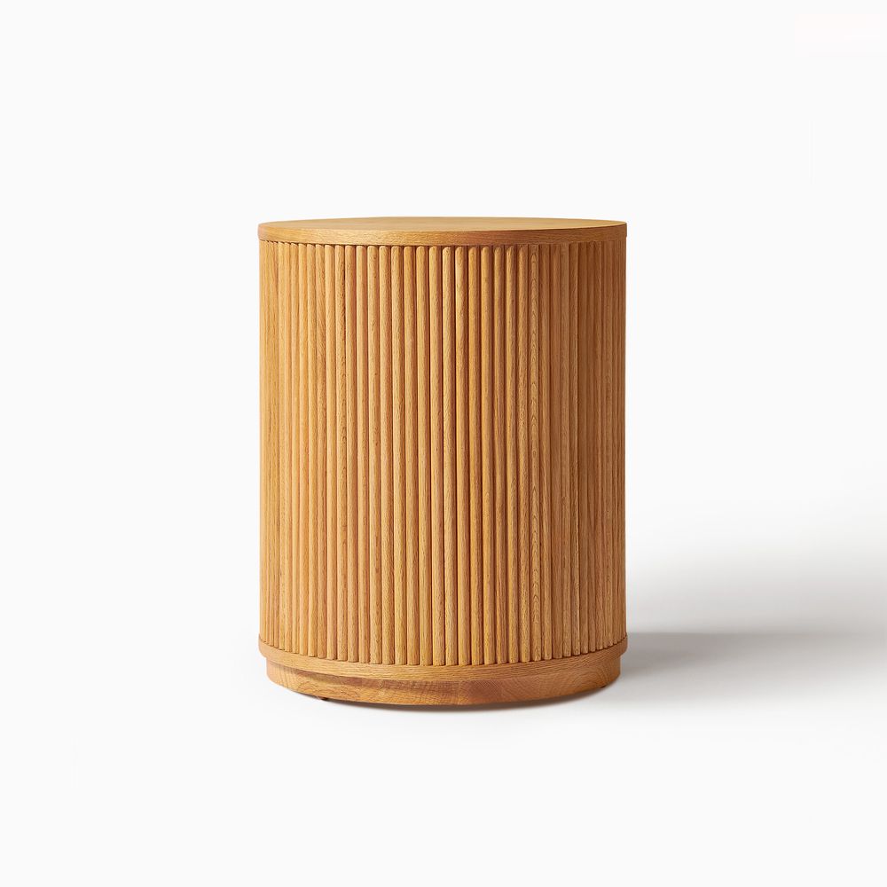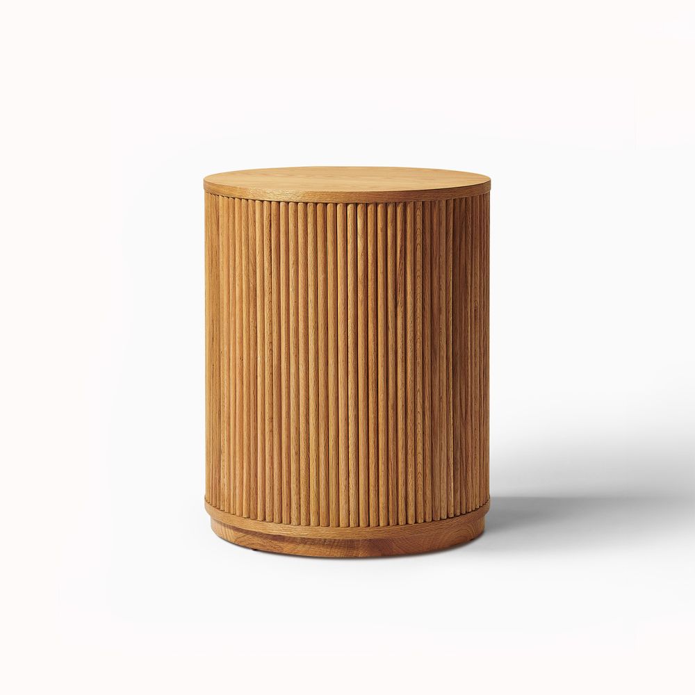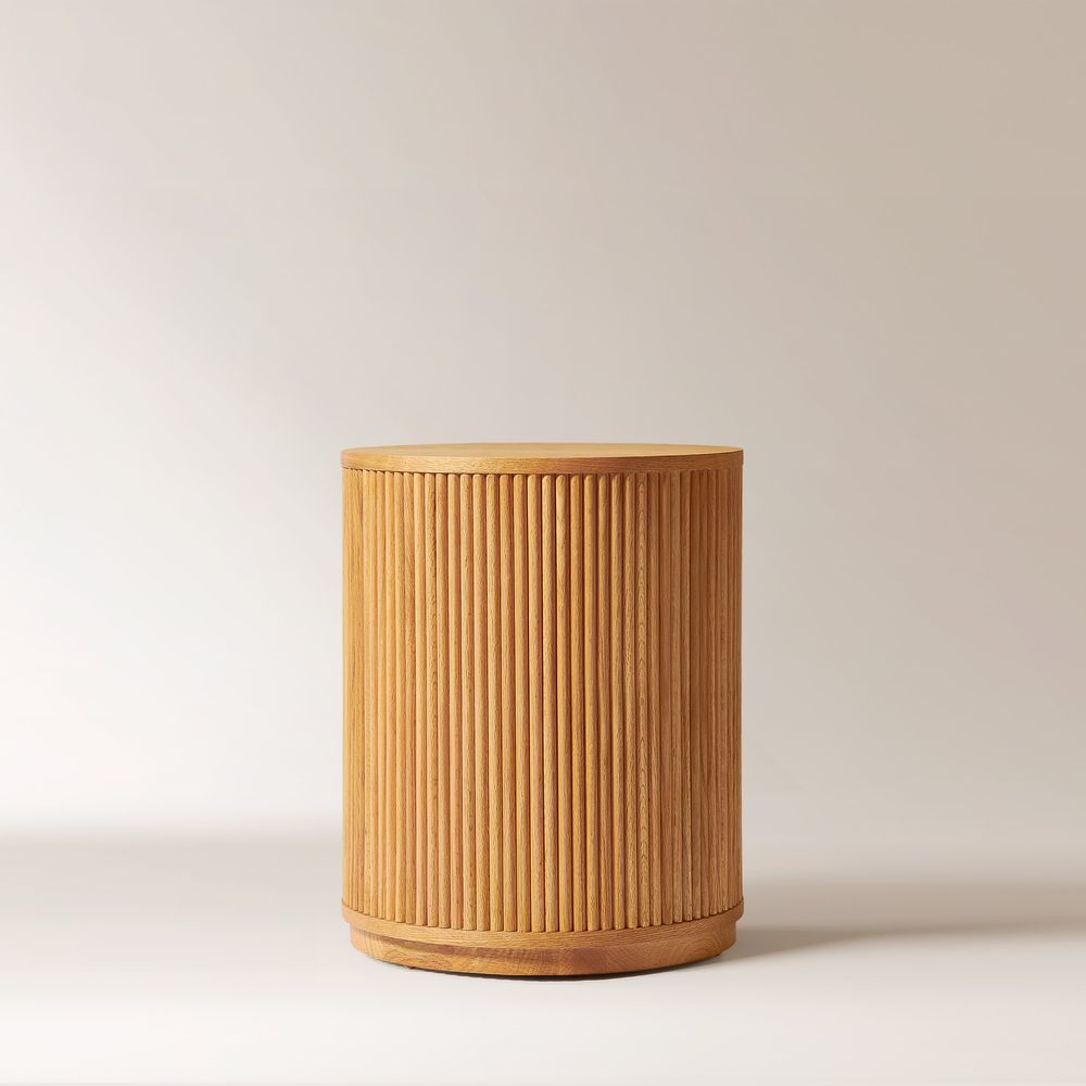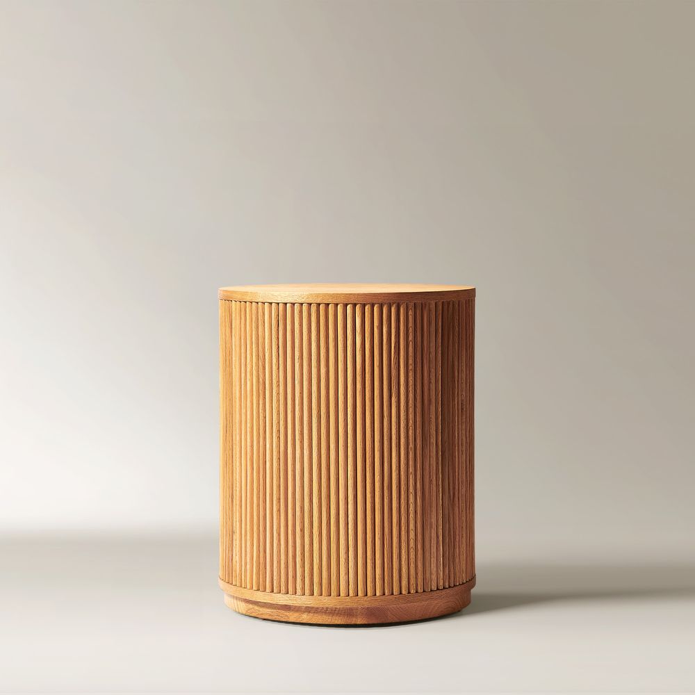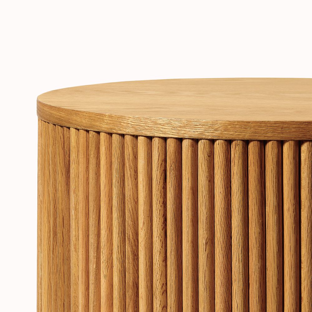 Crafted of American solid oak and engineered wood with oak veneers.All wood is kiln-dried for added durability.Solid wood fluting presents a natural texture.Blends mid-century minimalism with vertical stripe design.Color perception may vary due to wood characteristics, lighting, and devices. Wood grain variation is expected, as each is unique.