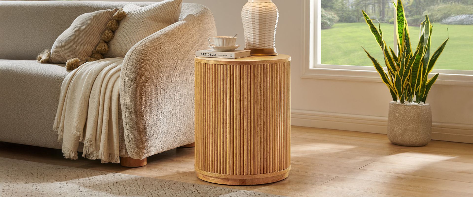 The Rolf collection was inspired by nature's quiet rhythm, blending modern simplicity with retro charm. The fluting was crafted from solid wood and highlights the wood's natural grain, creating a tactile warmth. The rounded edges and minimalist silhouette evoke a sense of vintage nostalgia, perfect for a curated living space that feels warm and cozy.